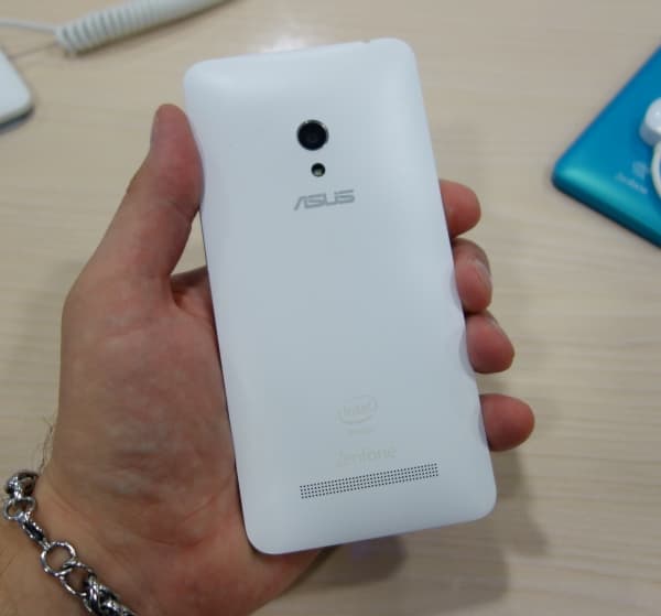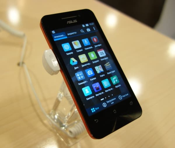 Теперь вкратце расскажем о каждом из представленных смартфонов более подробно. Самой простой и, соответственно, дешевой моделью в линейке является четырехдюймовый Zenfone 4. Смартфон оснащен двухъядерным процессором Intel Atom Z2520 с технологией Hyper-Threading с частотой 1,2 ГГц. Оперативной памяти в аппарате предусмотрен лишь 1 ГБ, а встроенный объем доступного пользователю флэш-накопителя составляет 8 ГБ. Смартфон оснащен 5-мегапиксельной камерой без вспышки, а емкость его аккумуляторной батареи составляет небольшие 1600-1750 мА·ч в зависимости от конкретной модификации. Смартфон совсем не тяжелый, его масса едва достигает 120 г, размеры составляют 124×61×12 мм.