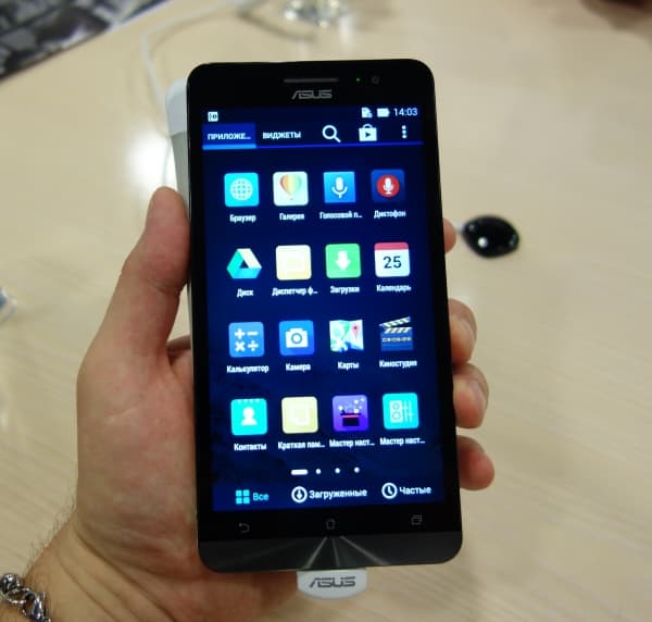 В линейку смартфонов Zenfone входят три модели, различающиеся, прежде всего, размерами экранов и, соответственно, габаритами. В соответствии с размером диагонали экрана от 4 до 6 дюймов аппараты и получили свое название: Zenfone 4, Zenfone 5 и Zenfone 6. Все экраны защищены устойчивым к появлению царапин стеклом Gorilla Glass 3, что неплохо, но вот высоким разрешением ни один из них похвастать, к сожалению, не может. Так, разрешение экрана самой младшей из моделей составляет 800×480 точек, а экраны двух оставшихся аппаратов имеют разрешение 1280×720 точек. Соответственно, такой показатель, как плотность точек, у дисплеев Zenfone также невелик — у средней пятидюймовой модели, например, он составляет 294 ppi. Еще один негативный момент заключается в том, что рамки вокруг экрана у Zenfone очень широкие: по бокам толщина рамок составляет никак не менее 5 мм, а на деле это выглядит и того хуже. И это в то время, когда все производители поголовно стремятся как можно сильнее минимизировать данные цифры.