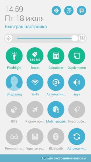 Серьезные изменения коснулись панели уведомлений: она полностью перерисована внешне, добавлено меню быстрого доступа, здесь можно быстро изменить яркость экрана, включить фонарик и т. д. Меню программ дополнено возможностями сортировки, в меню настроек добавлен отдельный раздел по управлению двумя SIM-картами, добавлена поддержка Miracast, доработан программный интерфейс камеры и звуковые эффекты. Кроме того, в настройки добавлен специальный раздел под названием «Индивидуальные настройки Asus». В нем собраны дополнительные настройки, которых не было в оригинальной ОС Android.
