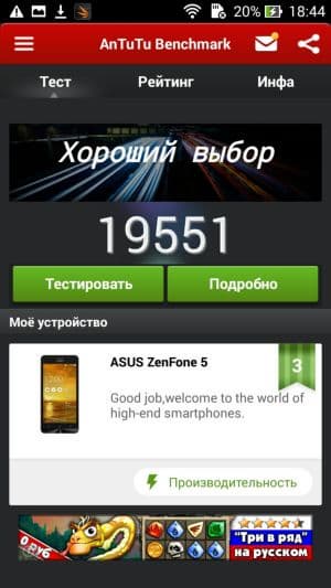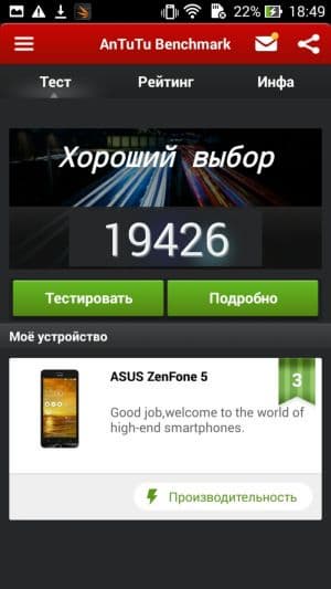 В целом, по результатам всех тестов смартфон Asus Zenfone 5 можно смело отнести к разряду аппаратов со средней (даже чуть выше среднего) производительностью. На данный момент аппаратной производительности данного смартфона должно хватать для выполнения большинства задач, которые могут поставить любые игры или другие приложения из Google Play Store.