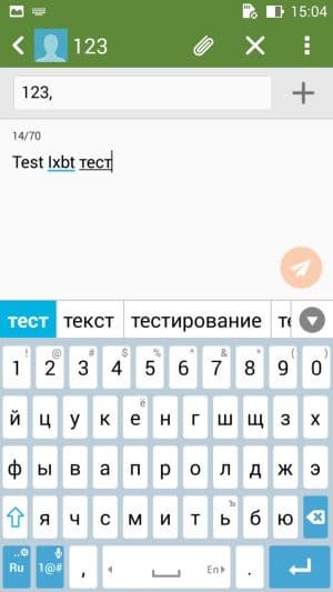 Самопроизвольных перезагрузок/выключений за время тестирования не наблюдалось, равно как и притормаживаний или зависаний системы. Прорисовка букв и цифр виртуальных клавиатур вполне комфортна для управления. Раскладка и расположение клавиш стандартное: переключение языков здесь осуществляется нажатием на специальную кнопку, также в наличии выделенный ряд с цифрами — очень удобно, нет необходимости каждый раз переключать раскладку. Телефонное приложение поддерживает Smart Dial, то есть во время набора телефонного номера сразу осуществляется и поиск по первым буквам в контактах. Имеется и возможность ввода текста безотрывным скольжением пальца от кнопки к кнопке (Swype).