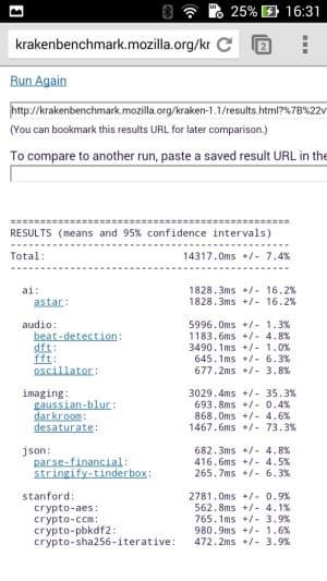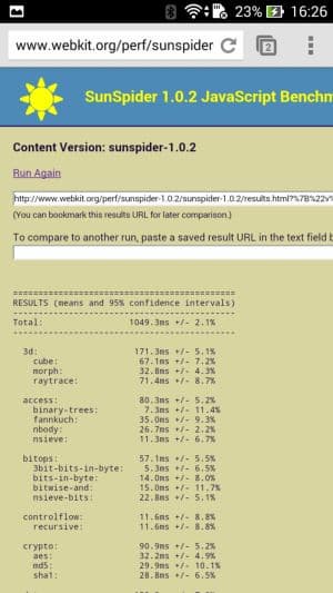 Что касается бенчмарков для оценки скорости движка javascript, то стоит всегда делать скидку на то, что в них результаты существенно зависят от браузера, в котором запускаются, так что сравнение может быть истинно корректным только на одинаковых ОС и браузерах, а такая возможность имеется при тестировании не всегда. В случае с ОС Android мы всегда стараемся использовать Google Chrome.