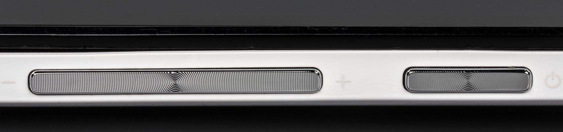 Кнопки металлизированные, достаточно крупные, но они не слишком заметно выпирают за пределы корпуса, чтобы их было удобно нащупывать вслепую. К тому же они имеют, пожалуй, слишком жесткий ход, однако это могут быть проблемы конкретного тестового образца. В любом случае, такие вещи необходимо проверять индивидуально в момент покупки — кто-то может и вовсе не придать этому никакого значения.
