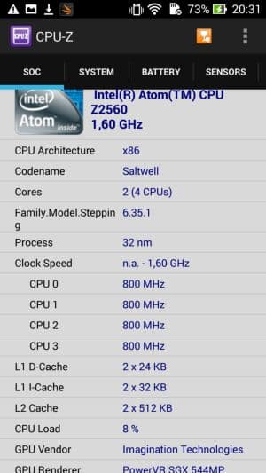 - SoC Intel Atom Z2560, 1,6 ГГц, 2 ядра