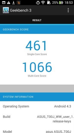 Результаты тестов показали, что два ядра Intel Atom Z2560 аппарата Asus Zenfone 5 вполне смогли противостоять на равных четырем ядрам ARM Cortex-A7 с частотой 1,4 ГГц в Qualcomm Snapdragon 400 (конфигурация Asus Padfone Е). Результаты оказались схожими, и вообще в вопросе аппаратной производительности новинка выглядит вполне достойно. Мы бы сказали — неожиданно достойно для той цены, по которой смартфон предлагается в продаже.