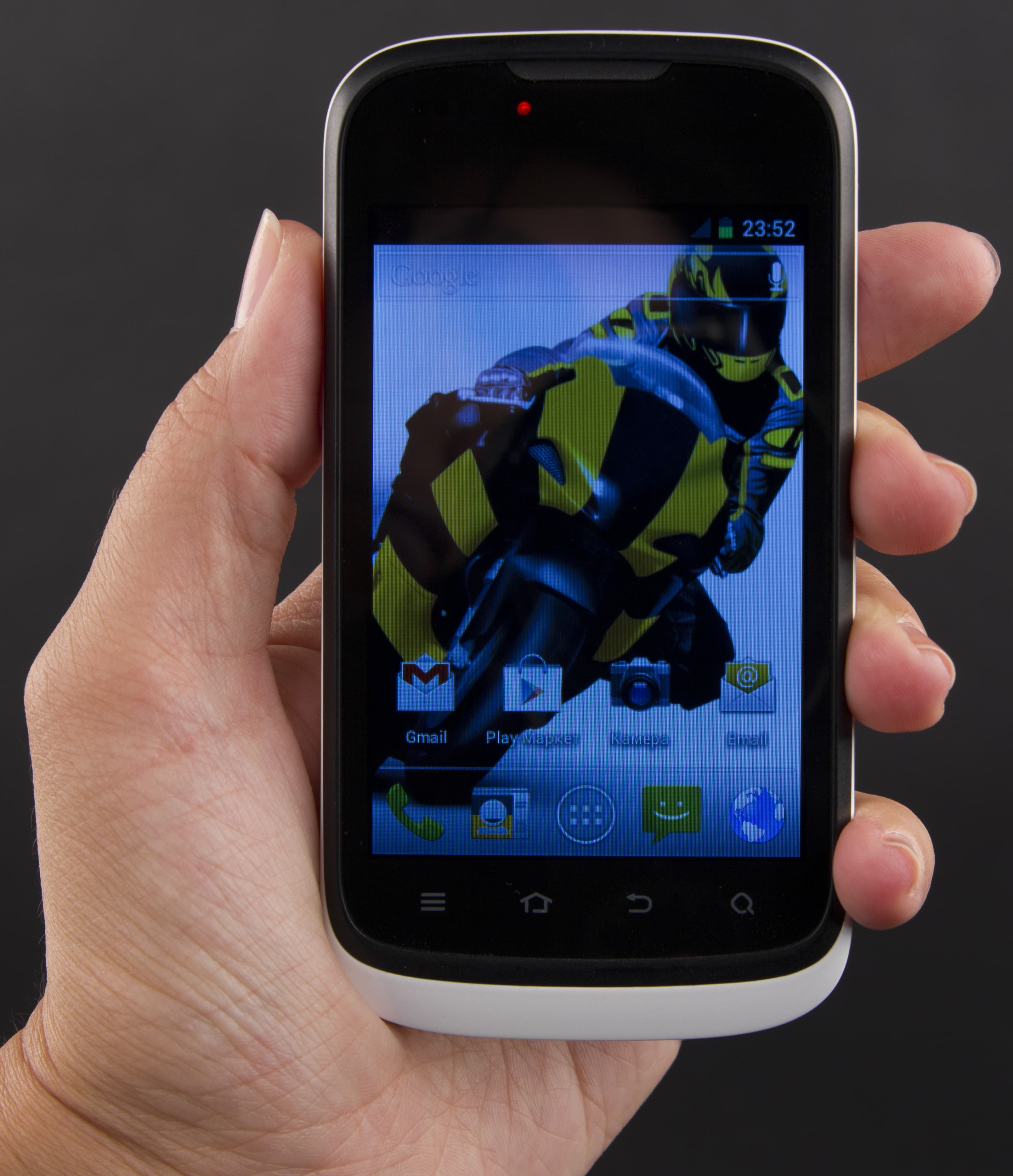Удивительно, но даже такой бюджетный смартфон не забыли оснастить датчиком освещения. Соответственно, дисплей здесь имеет автоматическую регулировку в соответствии с уровнем внешнего освещения, что также далеко не всегда встречается в бюджетных аппаратах (последний пример такой «экономии» — LG L90, продающийся в наших магазинах за без малого 10 тысяч рублей). Естественно, имеется у смартфона и датчик приближения, который блокирует экран при поднесении смартфона к уху. Технология мультитач позволяет обрабатывать до двух одновременных прикосновений. На ярком солнце экран слепнет достаточно сильно.