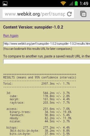 Что касается бенчмарков для оценки скорости движка javascript, то стоит всегда делать скидку на то, что в них результаты существенно зависят от браузера, в котором запускаются, так что сравнение может быть истинно корректным только на одинаковых ОС и браузерах, а такая возможность имеется при тестировании не всегда. В случае с ОС Android мы всегда стараемся использовать Google Chrome.