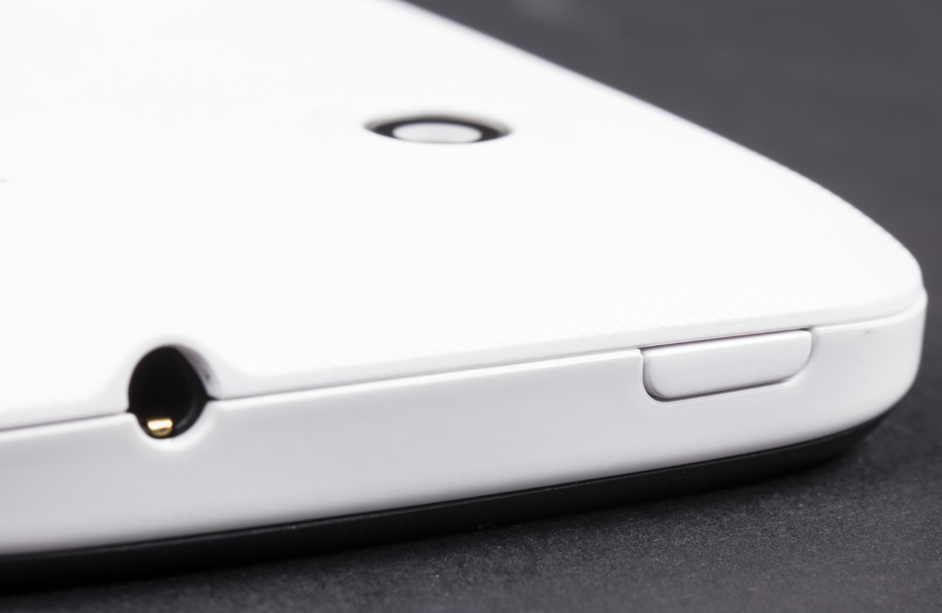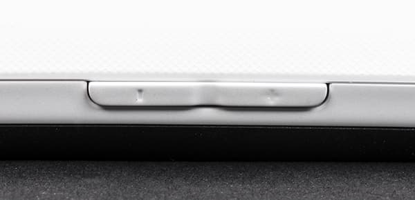 Механические аппаратные клавиши, расположенные на боковых торцах устройства, не равнозначны по эргономике: сдвоенная качелька регулировки громкости находится на своем месте, легко нащупывается вслепую, имеет мягкий и отчетливый отклик, так что к ней никаких претензий нет. А вот кнопка блокировки, наоборот, расположена, в самых худших традициях прошлого, не сбоку, а на верхнем торце, куда тянуться пальцем неудобно. К тому же, данная клавиша совершенно не выпирает за пределы корпуса, встроена заподлицо с поверхностью, так что вслепую ее нащупать просто невозможно.