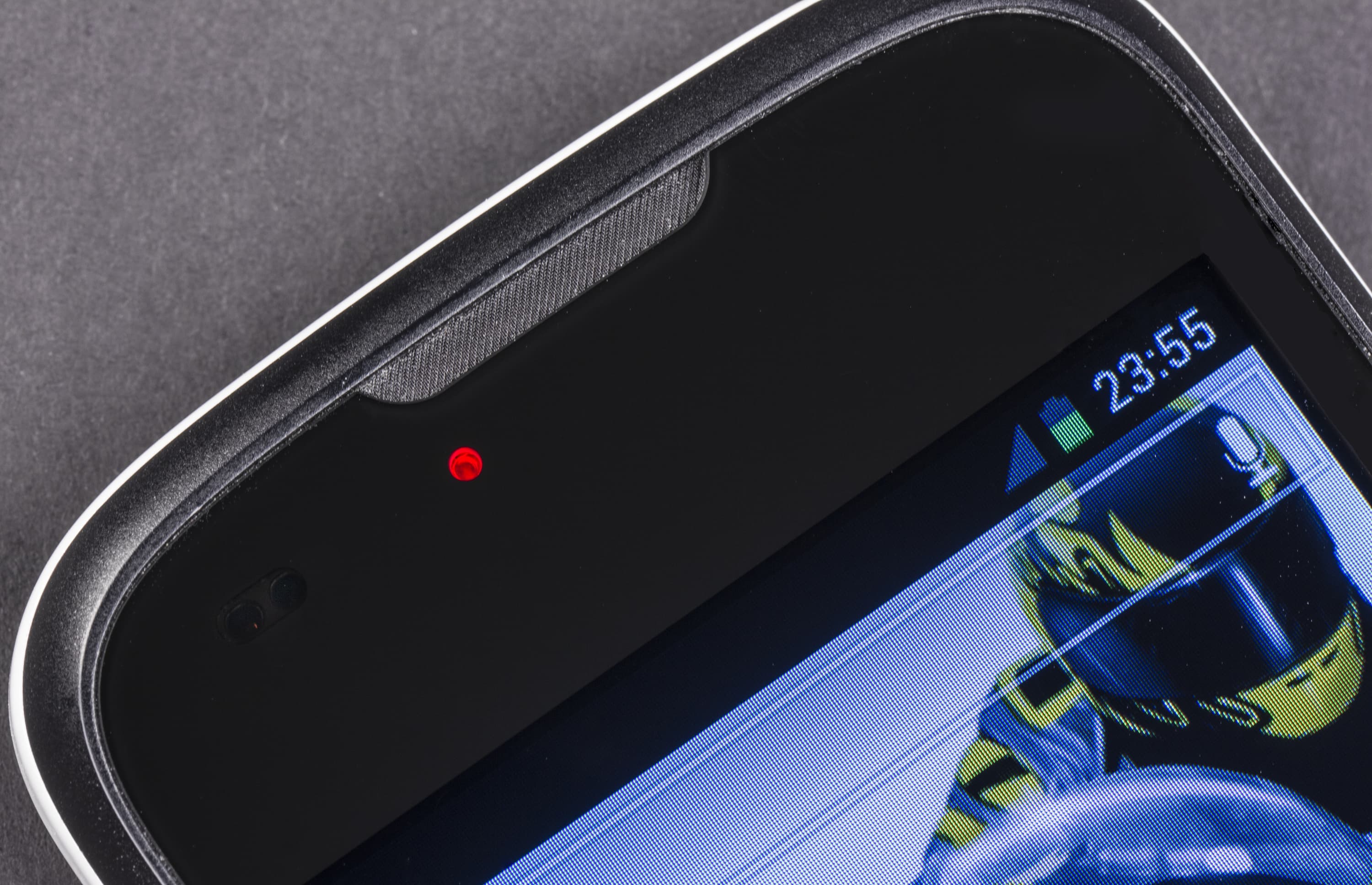 Зато с лицевой стороны недостатка в элементах нет: помимо решетки динамика и сенсорных аппаратных кнопок, рядом с дисплеем можно найти еще и светодиодный индикатор событий. Такой индикатор и в более продвинутые смартфоны не всегда встраивают, а элемент этот весьма полезен: он сигнализирует различными цветами о статусе зарядки и входящих событиях.