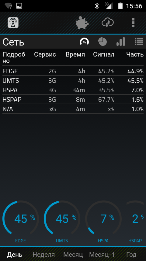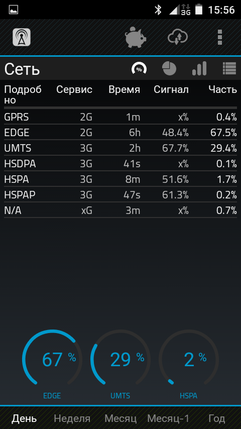 Оба устройства имеют по одному слоту для SIM-карт формата Micro. Радиомодули смартфонов поддерживают работу в сотовых сетях второго и третьего поколений. К стабильности подключения к сетям замечаний нет. В качестве оценки качества приведем статистику подключения к сетям в течение нескольких часов при движении по городу.
