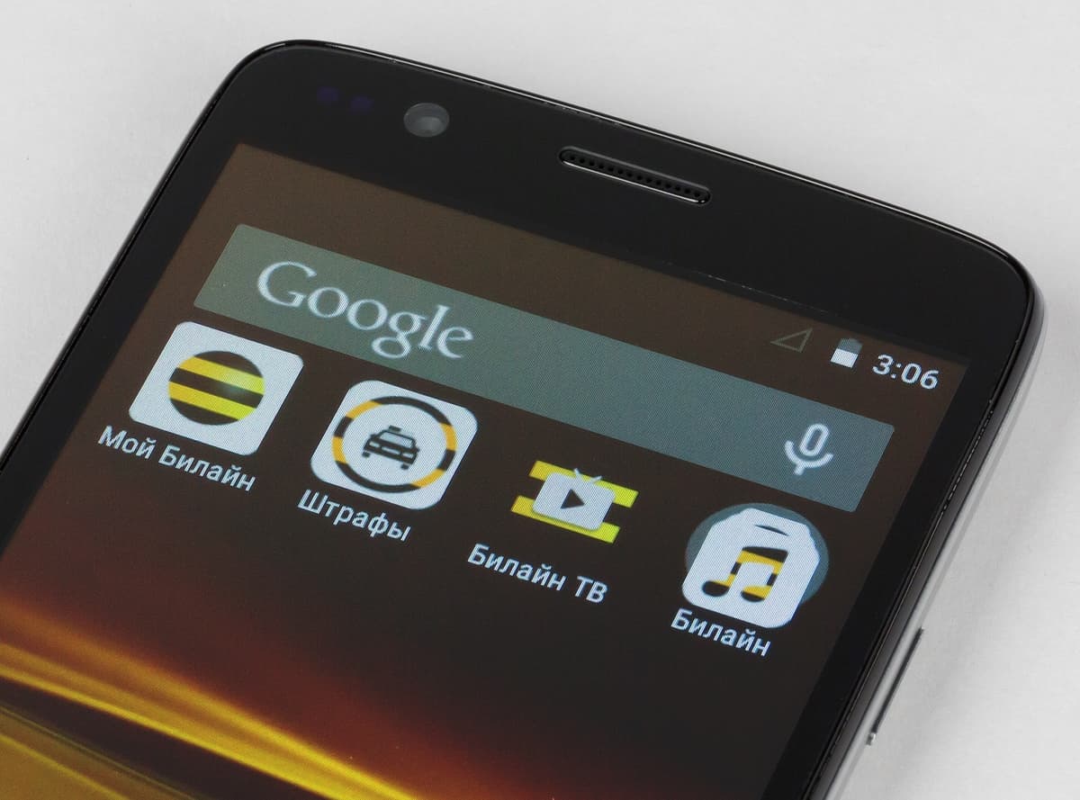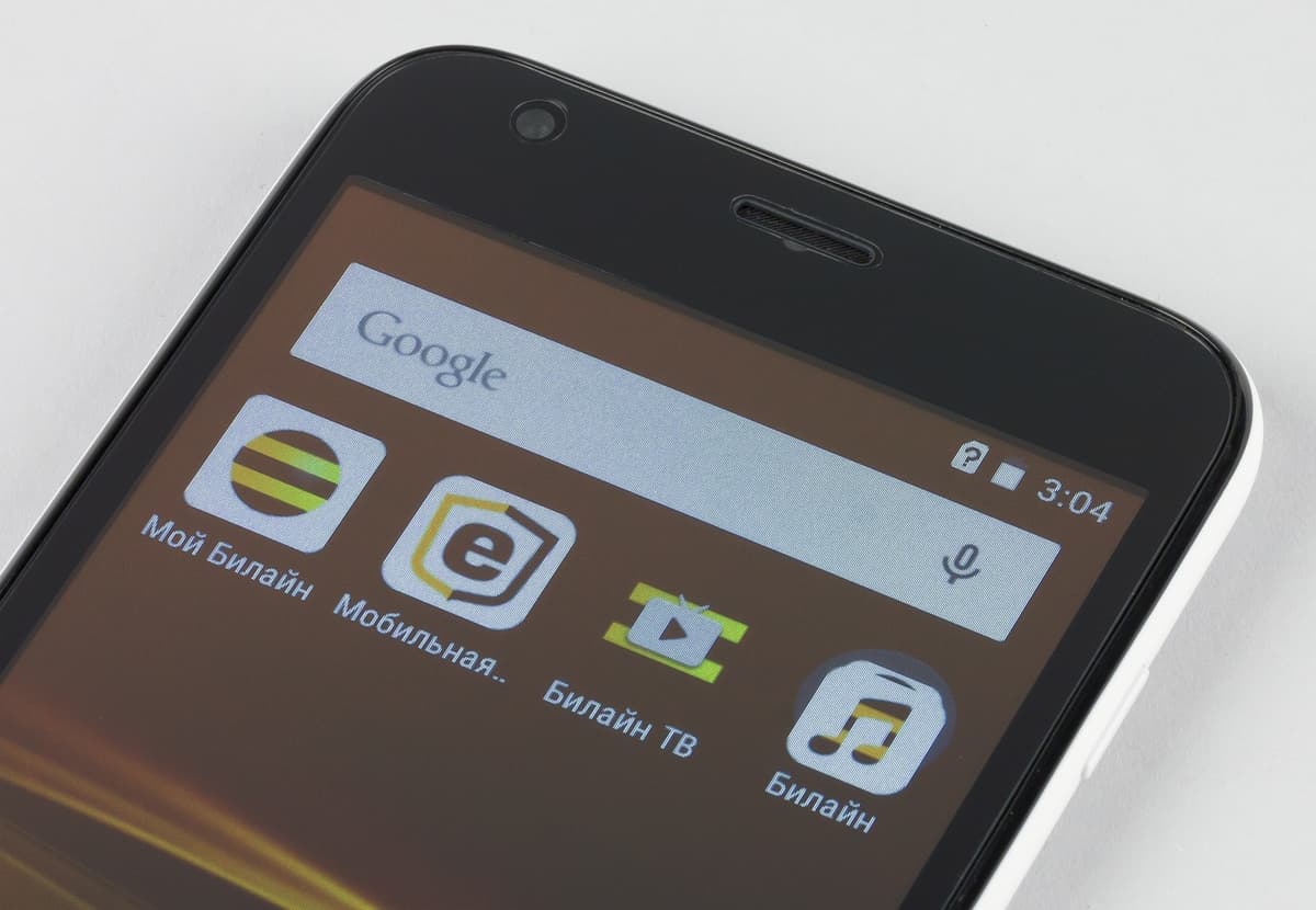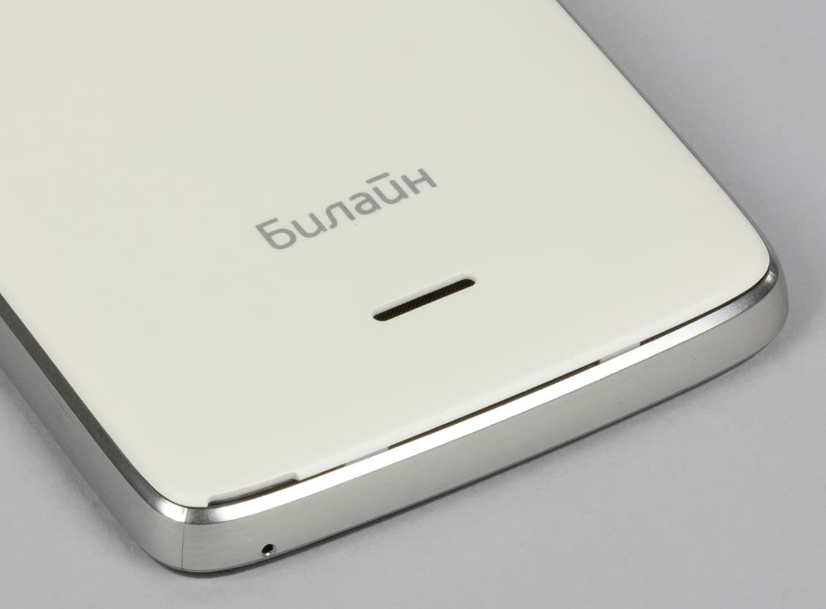 Справа внизу установлен динамик громкой связи, причем есть шанс его блокировки при размещении смартфона на столе экраном вверх. Не обошлось и здесь без логотипа «Билайн».