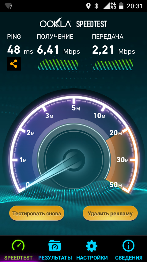 Аналогичное замечание касается и скоростей приема и передачи данных. Даже если повторять тесты на одном и том же месте, результаты могут «гулять» очень сильно. С данной парой мы получали в тесте speedtest.org до пяти мегабит в секунду на прием.