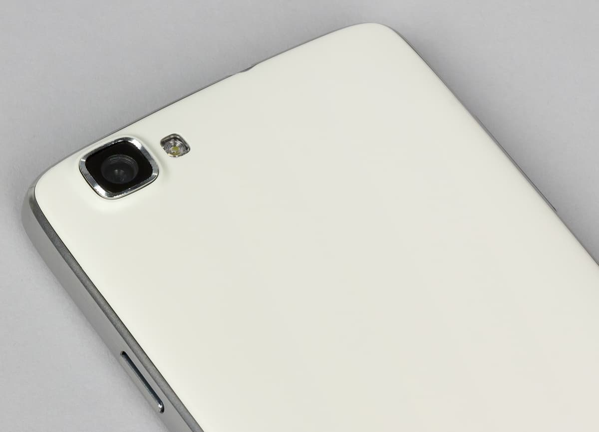 Выступающий объектив основной камеры установлен по центру сверху. Форма крышки немного защищает его от повреждения, а хромированное кольцо из-за этого почти незаметно. Слева от окошка камеры находится светодиодная вспышка.