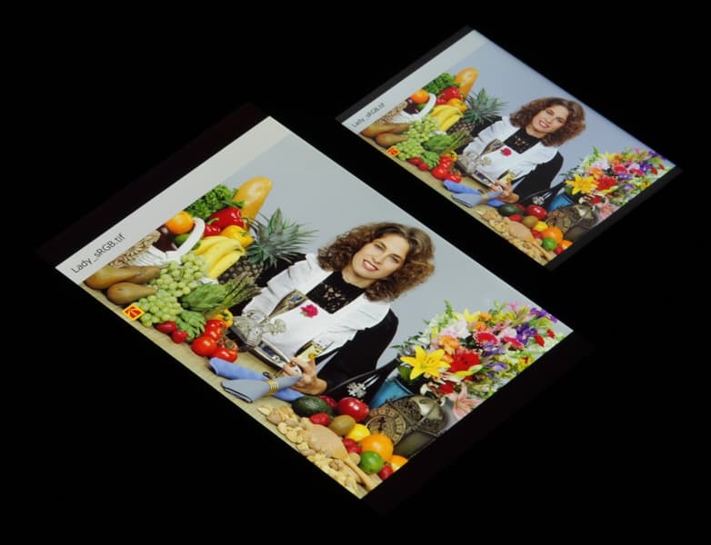Видно, что цвета не сильно изменились у обоих экранов, но у BlackBerry Key2 контраст уменьшился в большей степени из-за сильного высветления черного.