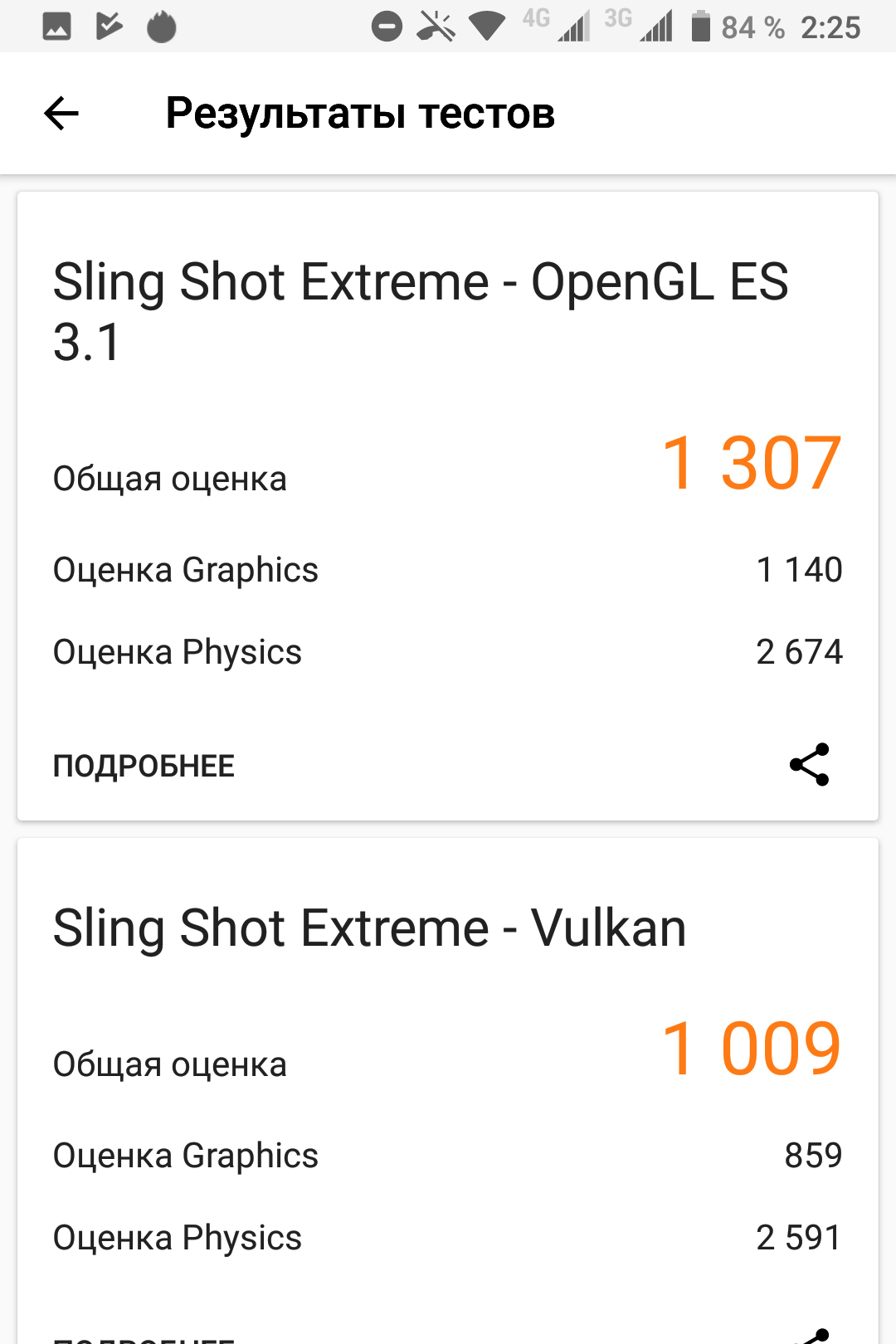 | 3DMark Ice Storm Sling Shot Ex Vulkan (больше — лучше) | 1009 | 747 | 767 | 695 | 1125 |
