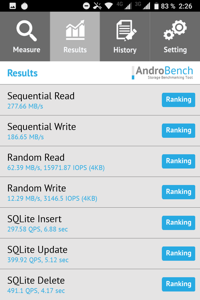 Результаты теста AndroBench на скорость работы с памятью: