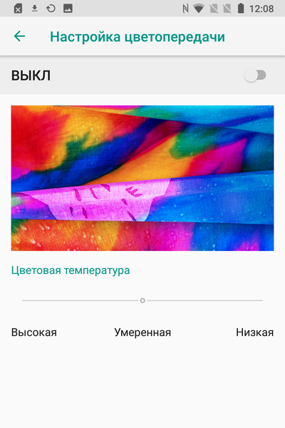В настройках можно скорректировать цветовой баланс и отдельно уменьшить интенсивность синей компоненты: