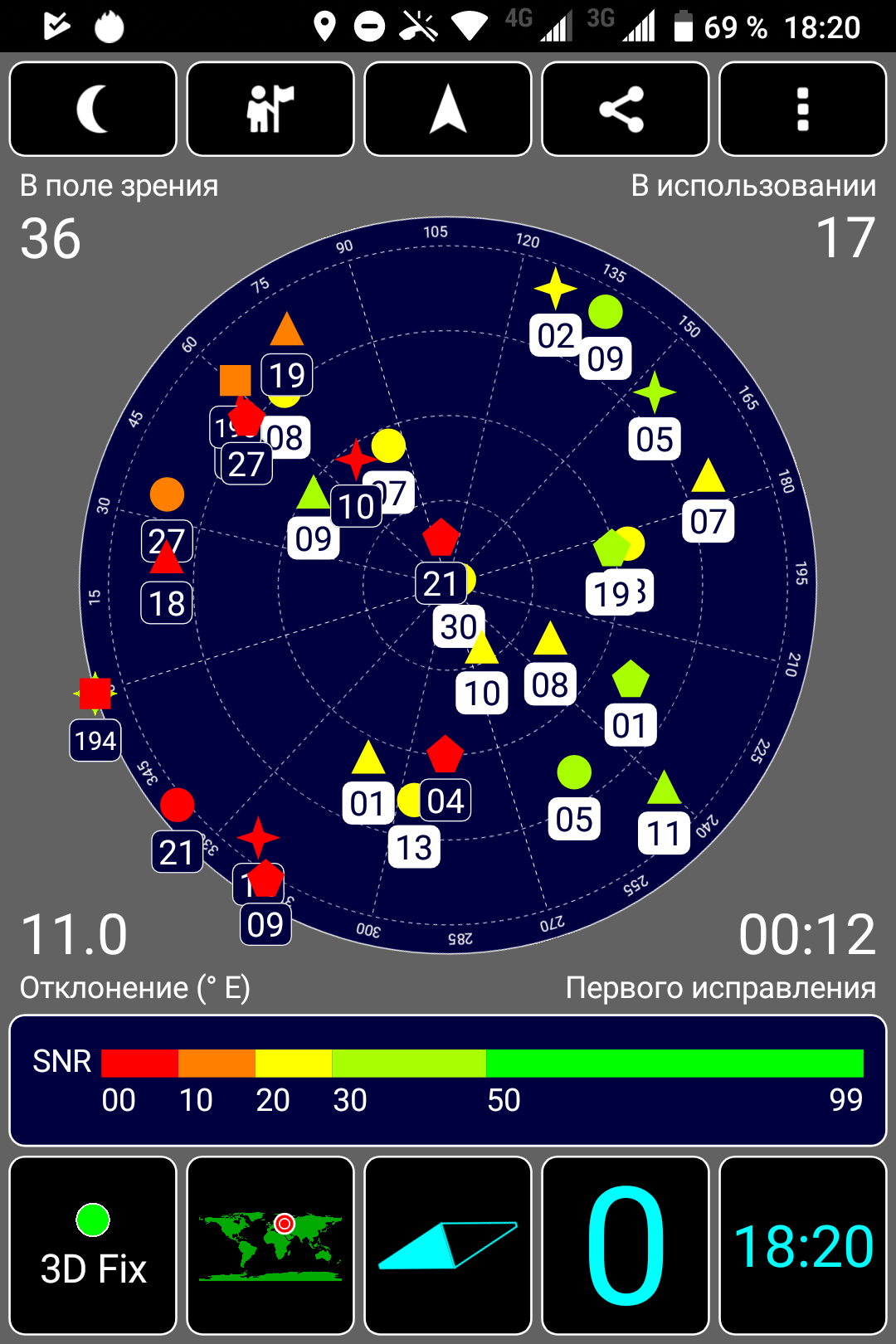 Навигационный модуль работает с GPS (с A-GPS), Глонасс, Beidou и всеми остальными спутниковыми системами. Первые спутники при холодном старте обнаруживаются быстро — в течение первых десятков секунд. Магнитный компас, необходимый для работы навигационных программ, в аппарате имеется.