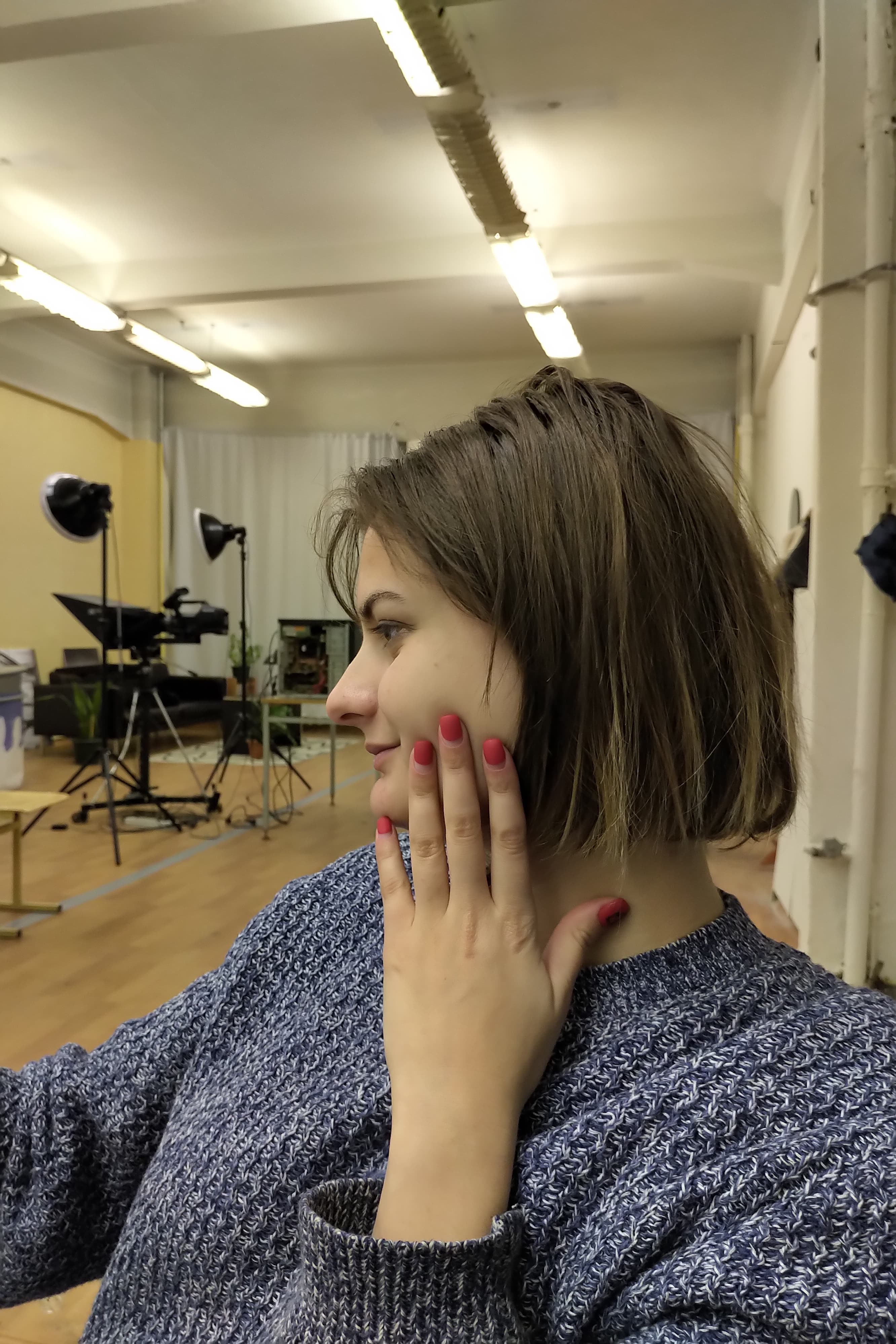 Теперь под углом примерно 45 градусов к плоскости и к стороне экрана: