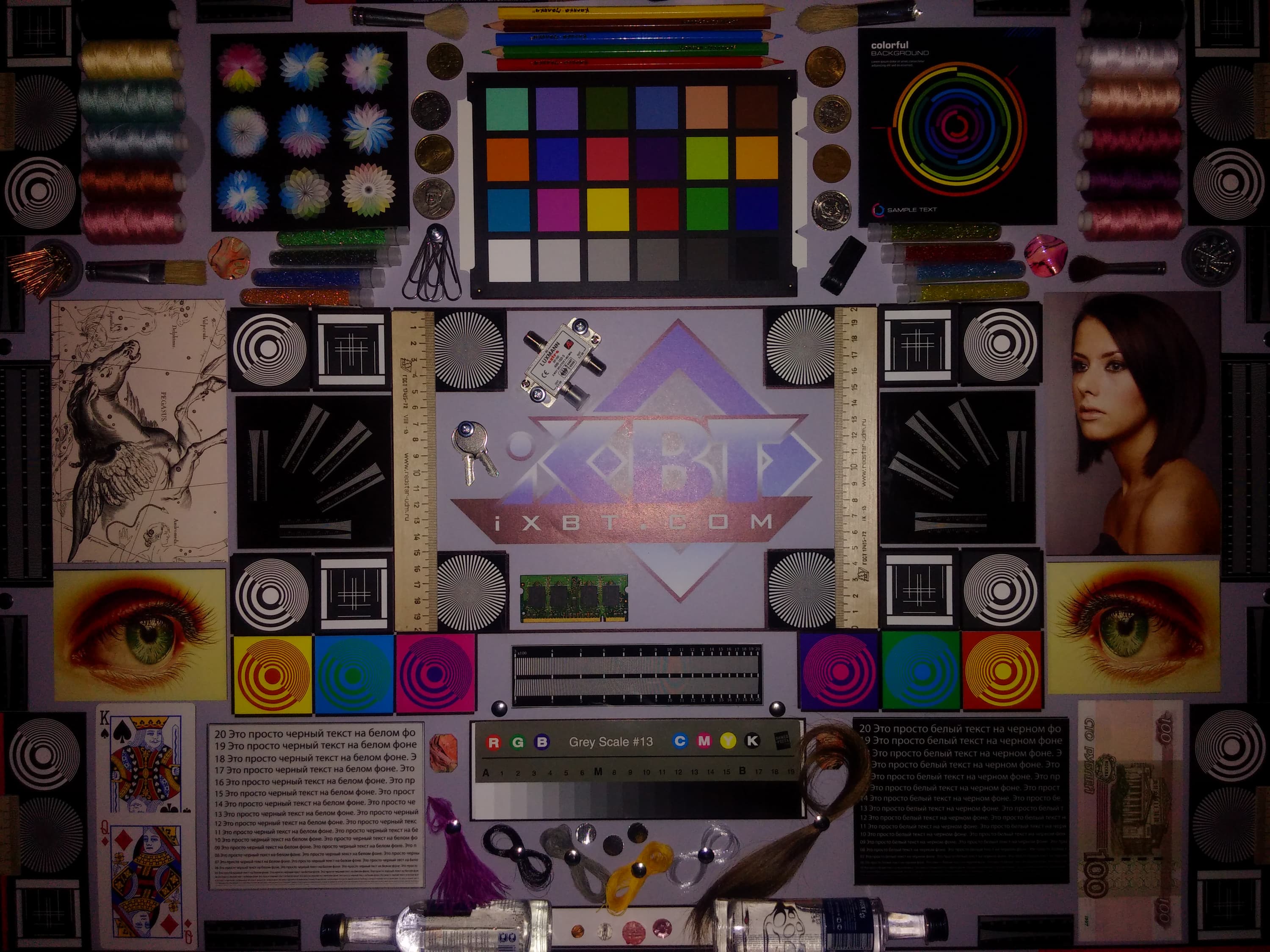 Отметим хорошую равномерность яркости и цветового тона белого поля. И тестовая картинка:
