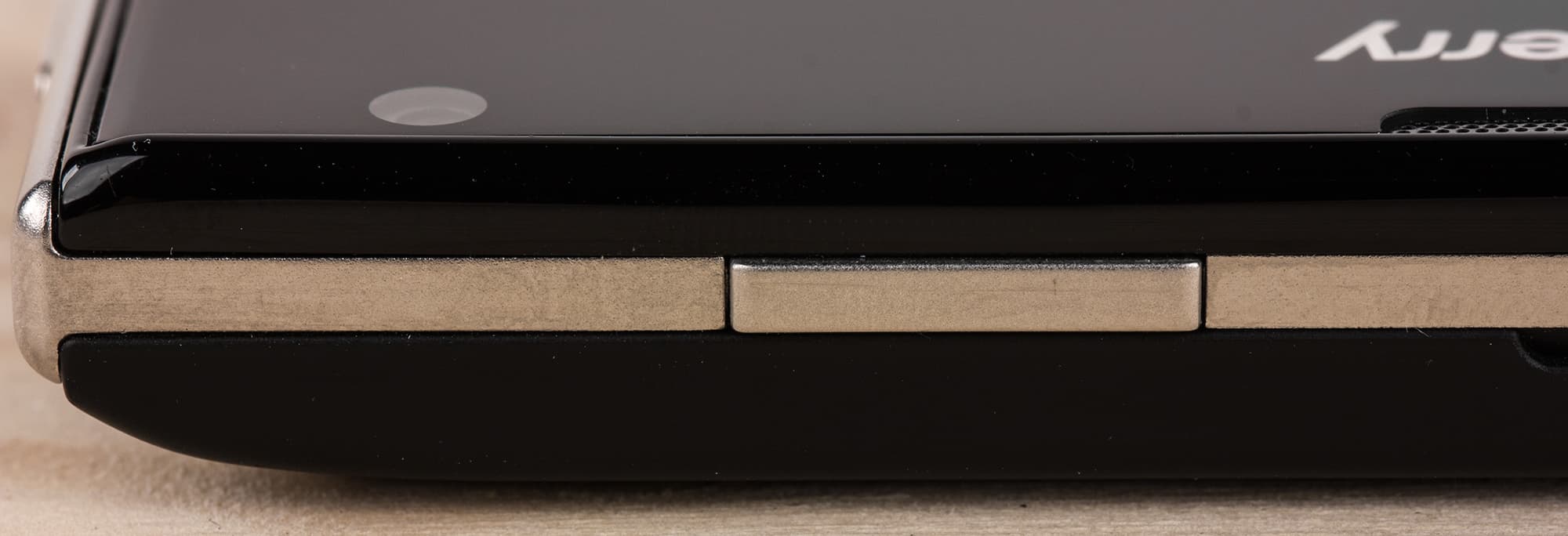 Кнопка металлическая, нажимается упруго, с усилием, и хотя она немного выступает, случайные нажатия практически исключены. Остальные кнопки размещены на правой грани: это две кнопки регулировки громкости, а между ними — дополнительная функциональная клавиша, которая может в некоторых приложениях выполнять определенные функции и вроде как даже может программироваться, но в целом она практически бесполезна и неинтуитивна.
