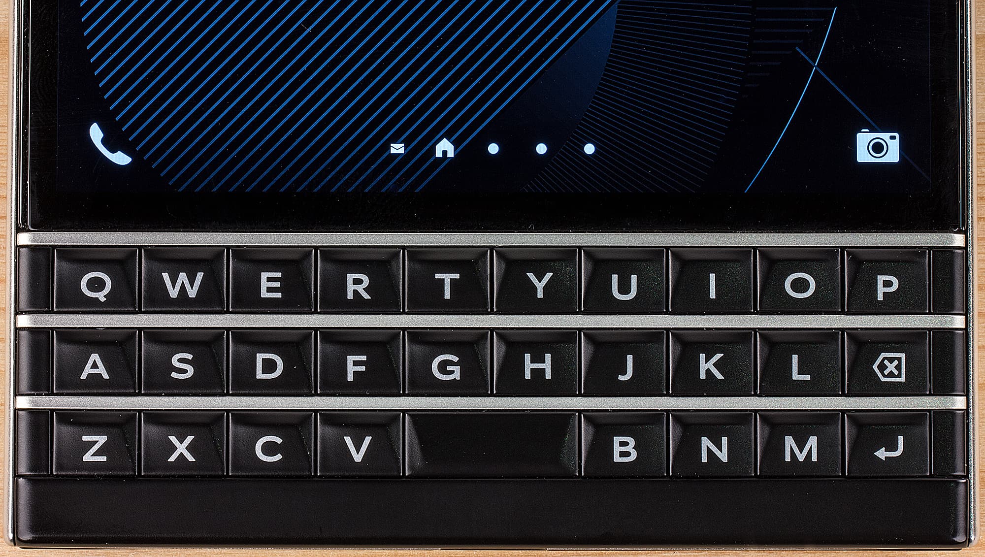 Впрочем, ширина делает крайне неудобным (почти невозможным) набор текста одной рукой. К этому прибавляются и некоторые особенности клавиатуры, затрудняющие привыкание к набору. У всех предыдущих кнопочных смартфонов BlackBerry (включая и последний Q10) было четыре ряда кнопок с буквами и цифрами. На Passport только три ряда: «потеряли» alt, оба shift, sym и $ (в русифицированных версиях там была буква «ю»). Ниже фото клавиатуры BlackBerry Q10 (сверху) и BlackBerry Passport (снизу). (Пропорции отражены приблизительно, не точно).