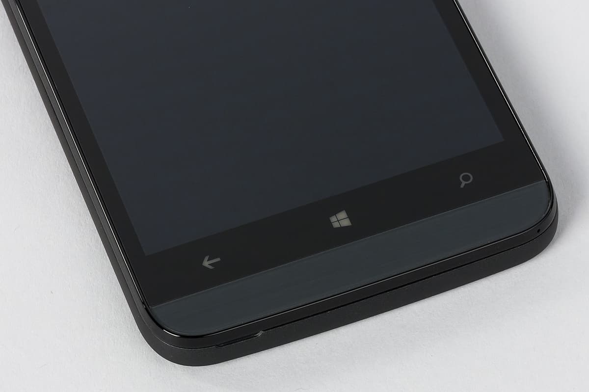 На нижнем поле под экраном находятся три привычные сенсорные кнопки. Они имеют приглушенную автоматическую подсветку, но и без нее хорошо различимы при наличии внешнего освещения. Ниже кнопок — просто полоска из пластика со структурой «грубой шлифовки под металл» для симметрии. Отверстие основного микрофона удалось найти только по соответствующему элементу на чехле — оно находится в правом углу глянцевой рамки.