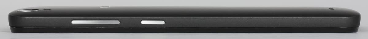 Аппаратные кнопки регулировки громкости и блокировки находятся на правом ребре. Они изготовлены из металла, заметно выступают и имеют ребристую поверхность. Пользоваться ими достаточно удобно — найти легко, нажатие четкое. Единственное замечание относится к выбранному цвету — они слишком заметны на корпусе. На левом торце ничего нет.