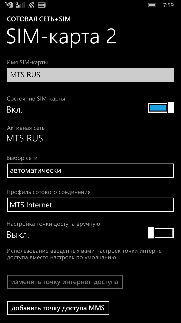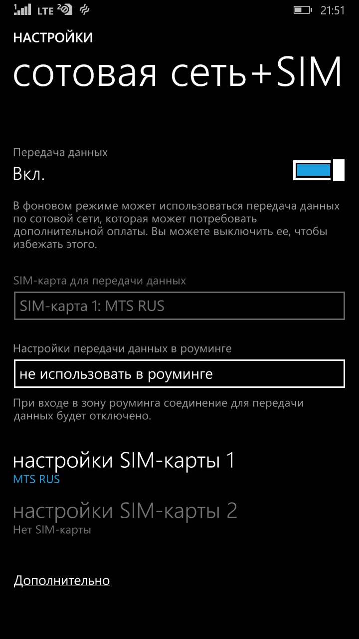 Модель имеет два слота для карт формата microSIM, однако радиоблок в устройстве только один. Отметим, что оба слота имеют равные возможности в плане поддержку сетей разных стандартов. Возможности принудительного выбора или ограничения типа сети нет. Через настройки пользователь выбирает, какая из SIM-карт будет использоваться для передачи данных.