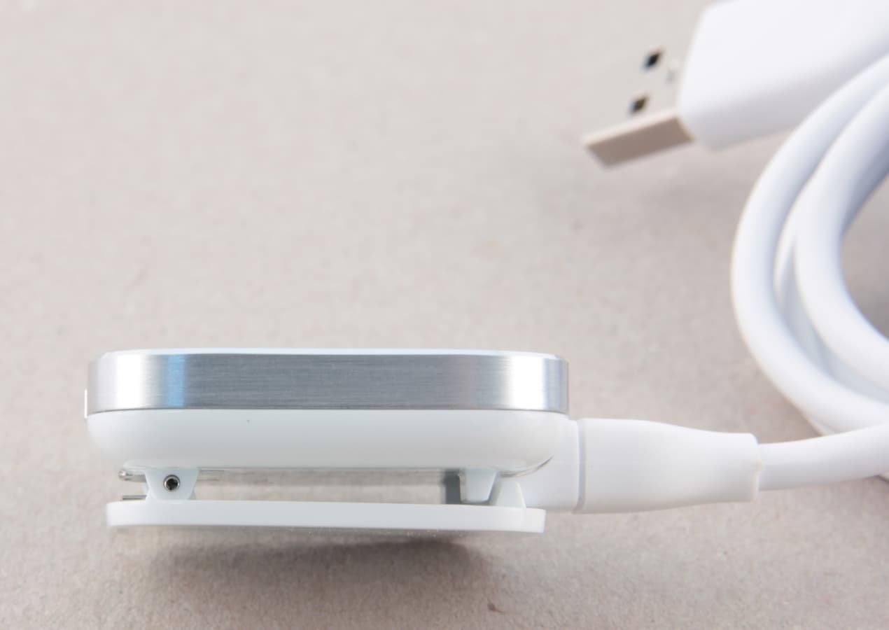 Заряжается гаджет при помощи специального кабеля; коннекторы находятся под клипсой. Снять ее с устройства нельзя. Однако это не является недостатком. Совсем даже наоборот: появляется возможность надежно прицепить SmartWatch без дополнительных приспособлений.