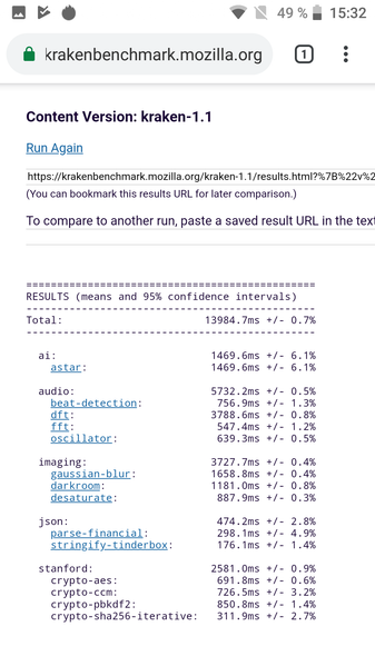 | Mozilla Kraken (мс, меньше — лучше) | 13985 | 11974 | 11319 | 4463 | 9666 |