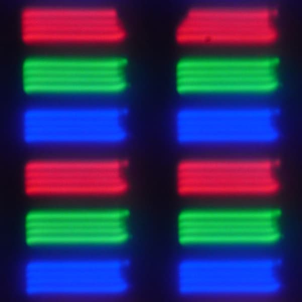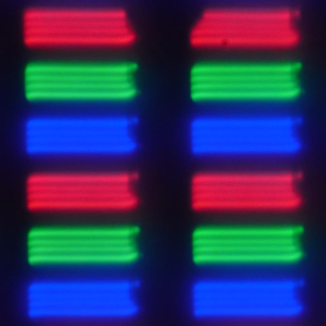 В данном смартфоне используется матрица типа IPS. Микрофотографии демонстрируют типичную для IPS структуру субпикселей: