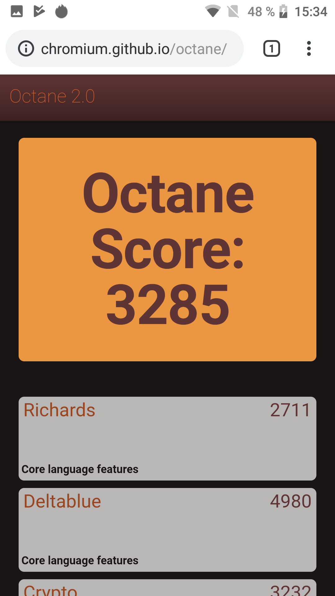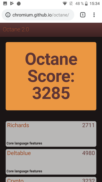 | Google Octane 2 (больше — лучше) | 3285 | 3818 | 4126 | 8450 | 4696 |