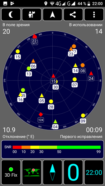 Навигационный модуль работает и с GPS (с A-GPS), и с отечественной Глонасс без поддержки китайской Beidou. Первые спутники даже при холодном старте обнаруживаются достаточно быстро, в течение первой минуты, точность позиционирования не вызывает претензий. А вот магнитный компас, необходимый для навигационных программ, в аппарате почему-то отсутствует.