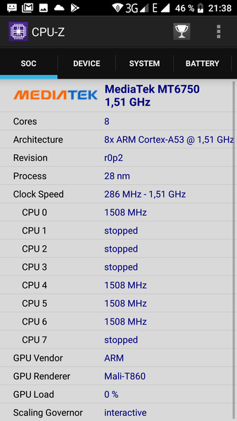 - SoC MediaTek MT6750T, 8 ядер ARM Cortex-A53 @1/1,5 ГГц