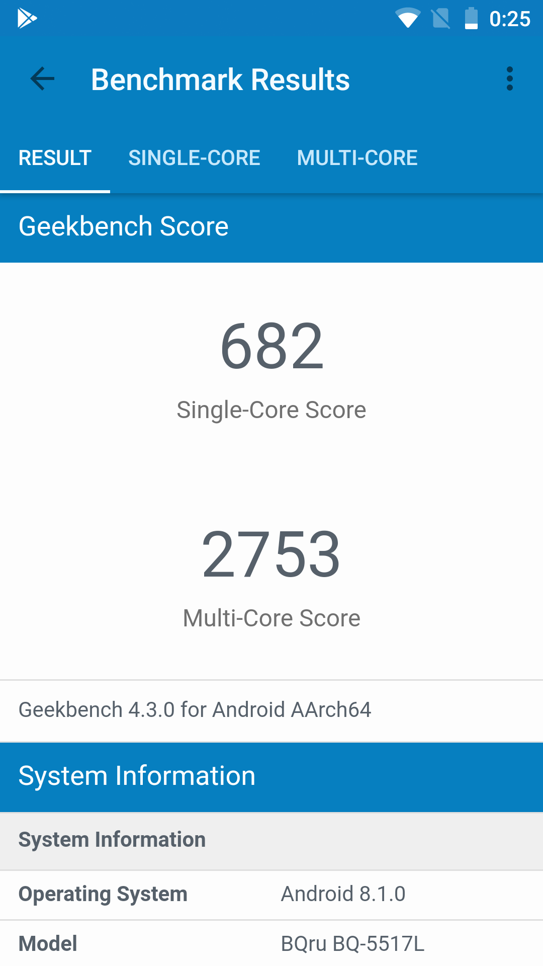 | GeekBench (v4.x) (больше — лучше) | 682/2753 | 695/3354 | 748/3890 | 1321/3190 | 930/3625 |