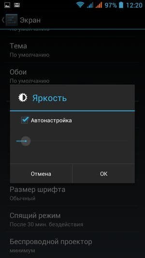 При ручном управлении яркостью ее максимальное значение составило порядка 425 кд/м², а минимальное — 70 кд/м². Максимальная яркость не очень высокая, и, учитывая слабые антибликовые свойства, при ярком дневном свете изображение на экране должно быть плохо различимым. В полной темноте яркость можно понизить до более-менее комфортного уровня, хотя в этих условиях означенная минимальная яркость будет избыточной, и энергия аккумулятора будет только зря расходоваться на подсветку. Работает автоматическая регулировка яркости по датчику освещенности (он расположен слева от прорези фронтального громкоговорителя). В автоматическом режиме при изменении внешних условий освещенности яркость экрана как повышается, так и понижается. В полной темноте функция автояркости уменьшает яркость до 120 кд/м² (излишне ярко), в условиях освещенного искусственным светом офиса (примерно 400 лк) устанавливает на 190 кд/м² (подходит), в очень ярком окружении (соответствует освещению ясным днем вне помещения, но без прямого солнечного света — 20000 лк или немного больше) повышает всего до 340 кд/м² (а хотелось бы получать максимум). В итоге функция автоподстройки яркости работает не совсем адекватно. На любом уровне яркости значимой модуляции подсветки нет, поэтому нет и никакого мерцания экрана.