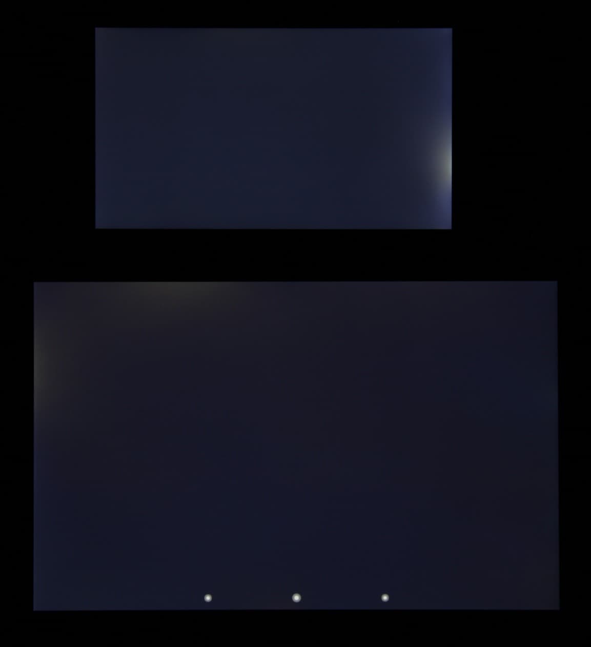 При перпендикулярном взгляде равномерность черного поля отвратительная, так как в нижней части экрана присутствует неприятная засветка: