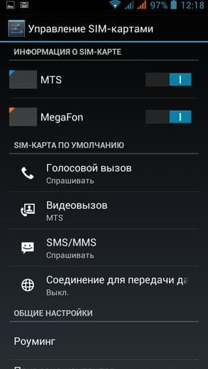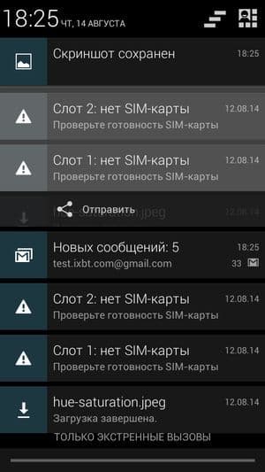 Смартфон поддерживает работу с двумя SIM-картами, и в целом работа с ними в меню организована по знакомому принципу: можно любую из SIM-карт назначить основной для организации голосовых звонков, передачи данных или отправки SMS-сообщений. При наборе номера также можно выбрать желаемую карту, вызвав контекстное меню из меню уведомлений. С сетями 3G может работать SIM-карта в любом слоте, однако одновременно в этом режиме может работать лишь одна из карт (вторая будет работать только в 2G). Работа с двумя SIM-картами организована по привычному стандарту Dual SIM Dual Standby, когда обе карты могут находиться в активном режиме ожидания, но одновременно работать не могут — радиомодуль здесь только один.