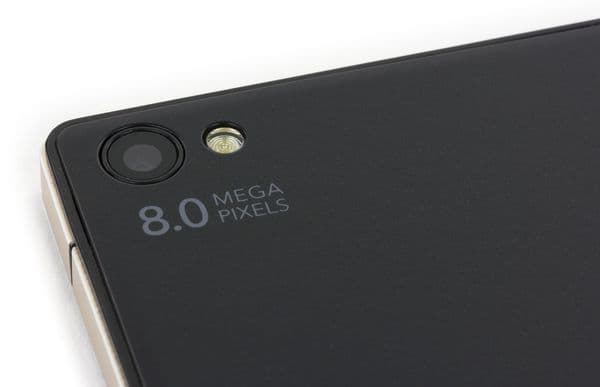 На внешней стороне задней части смартфона вровень с поверхностью врезано круглое, обрамленное колечком окошко основной камеры, а рядом с ним — односекционная светодиодная вспышка, для которой не нашлось предустановленного приложения, позволяющего использовать вспышку в качестве фонарика.