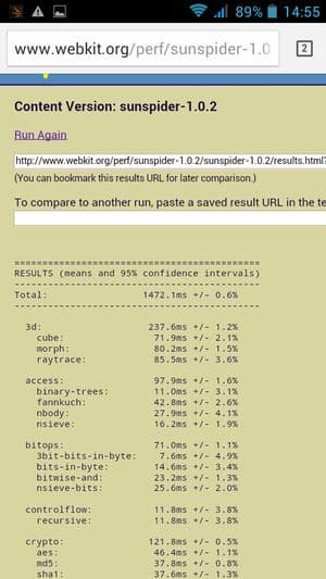 Что касается бенчмарков для оценки скорости движка javascript, то стоит всегда делать скидку на то, что в них результаты существенно зависят от браузера, в котором запускаются, так что сравнение может быть истинно корректным только на одинаковых ОС и браузерах, а такая возможность имеется при тестировании не всегда. В случае с ОС Android мы всегда стараемся использовать Google Chrome.