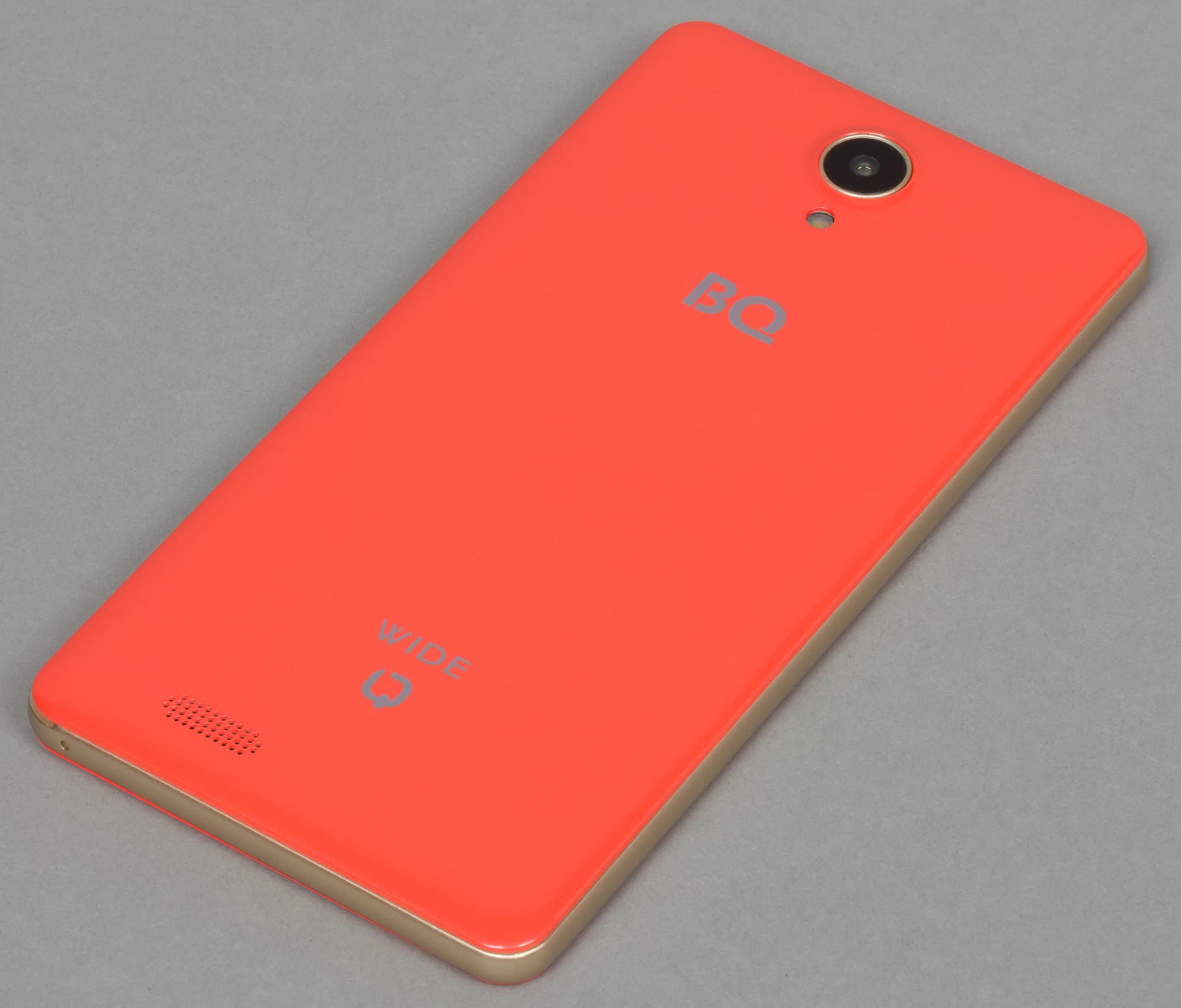 Внешность у BQ Wide самая простая: смартфон выглядит аккуратно, но дешево. Корпус сделан из скромного пластика, еще и окрашенного в довольно сомнительные цвета. Трудно сказать, многим ли такие ядовитые оттенки придутся по душе.
