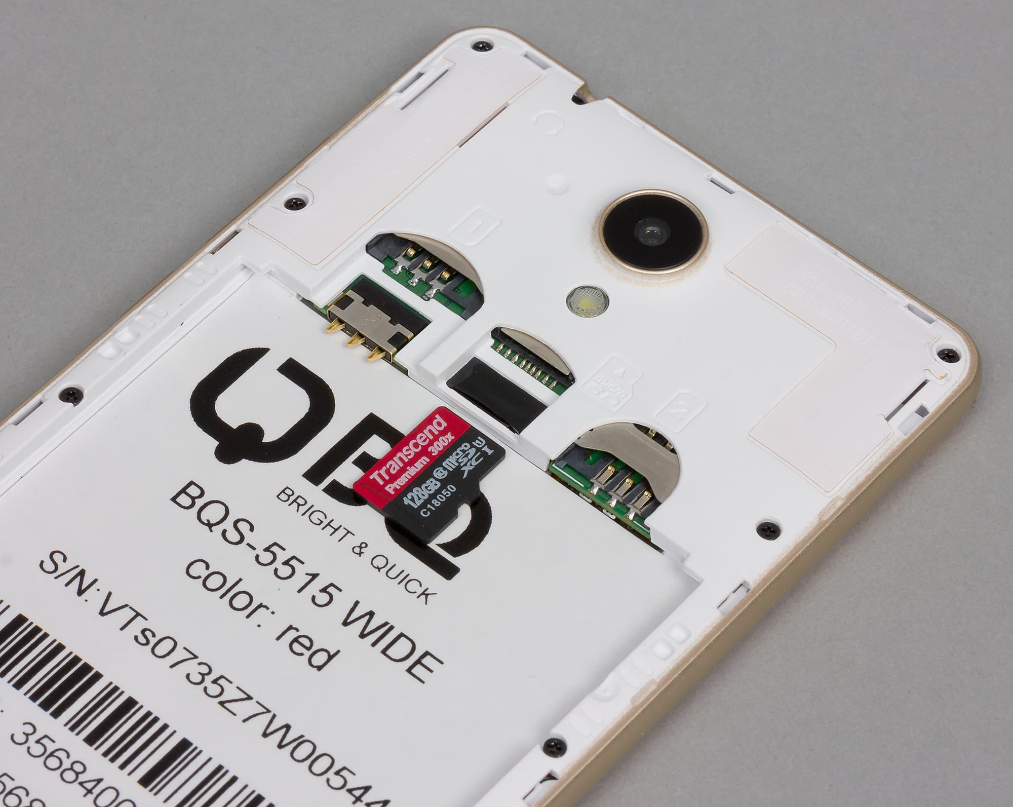Аппаратная платформа BQ Wide строится на базе 64-битной SoC MediaTek MT6735. В конфигурацию чипа входит четыре процессорных ядра Cortex-A53, работающих на частоте до 1 ГГц. За обработку графики отвечает видеоускоритель Mali-T720. Объем ОЗУ составляет всего лишь 1 ГБ, а пользовательское хранилище изначально составляет около 7,5 ГБ из 8. Есть возможность установки карт microSD, официально поддерживается объем до 32 ГБ. На практике наша проверочная карта Transcend Premium microSDXC UHS-1 объемом 128 ГБ не была распознана смартфоном, а с карточкой объемом 16 ГБ проблем не возникло. Карту microSD можно использовать для установки приложений.