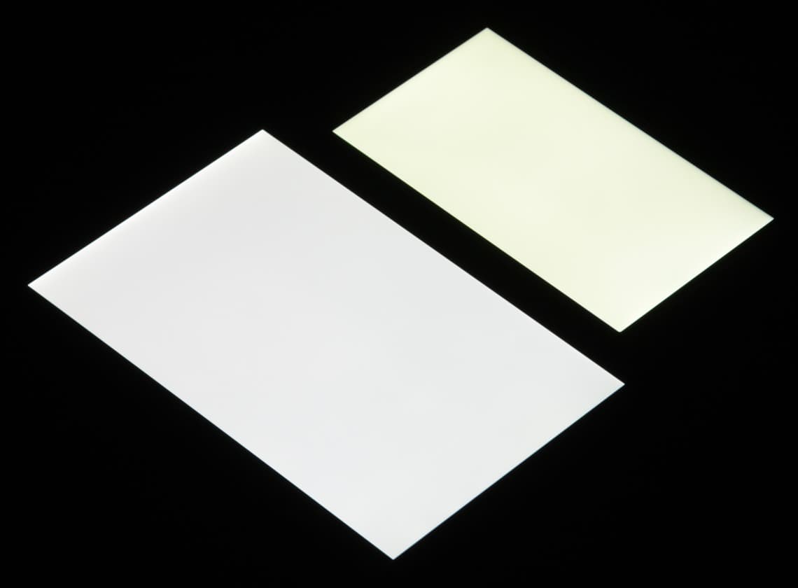 Отметим некоторую неравномерность яркости и цветового тона белого поля.