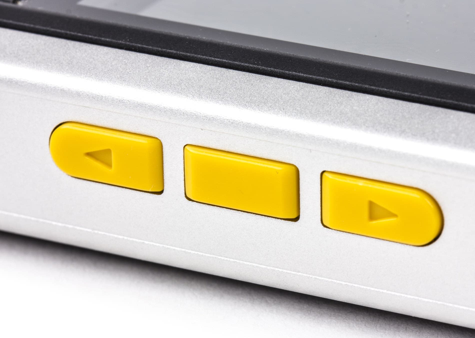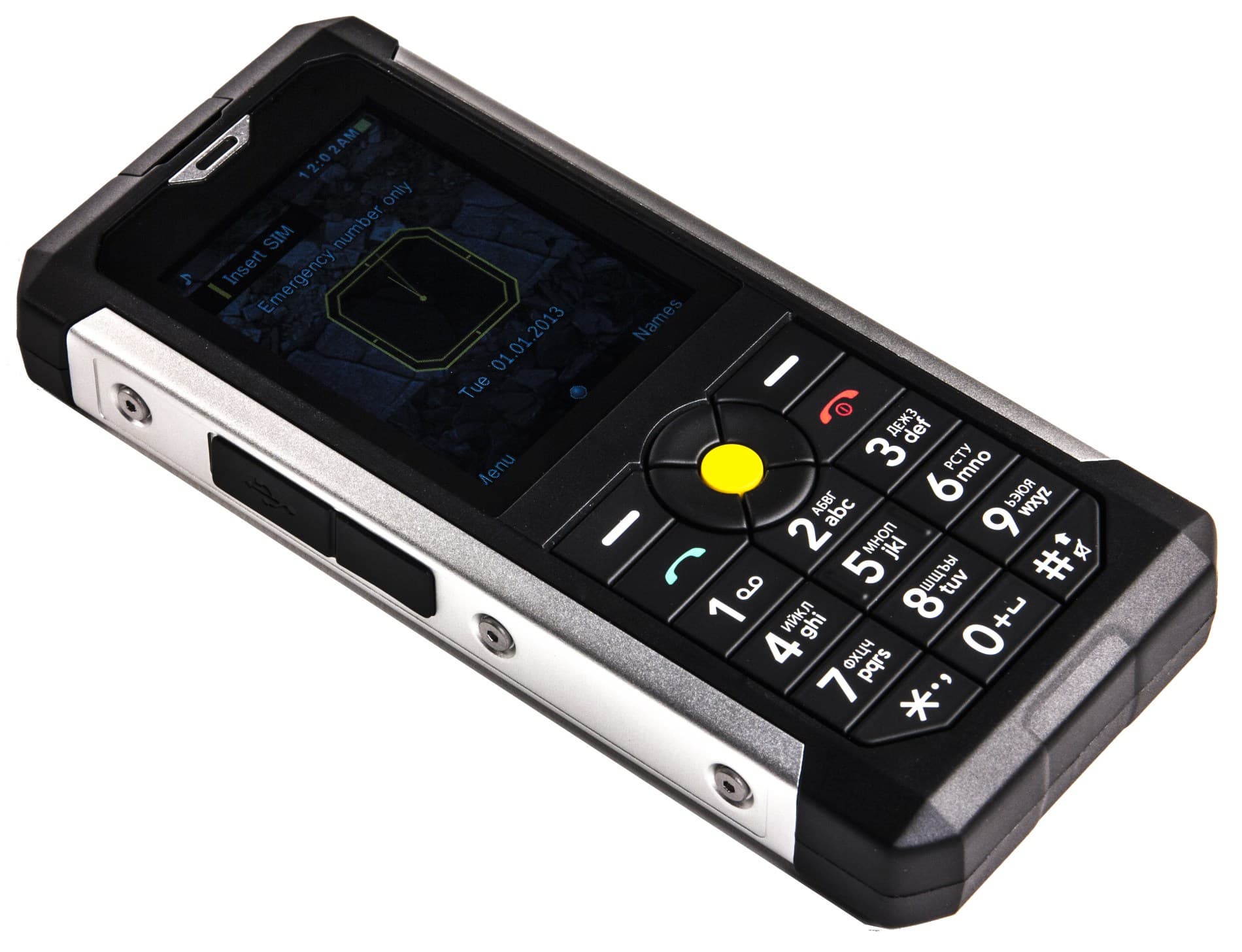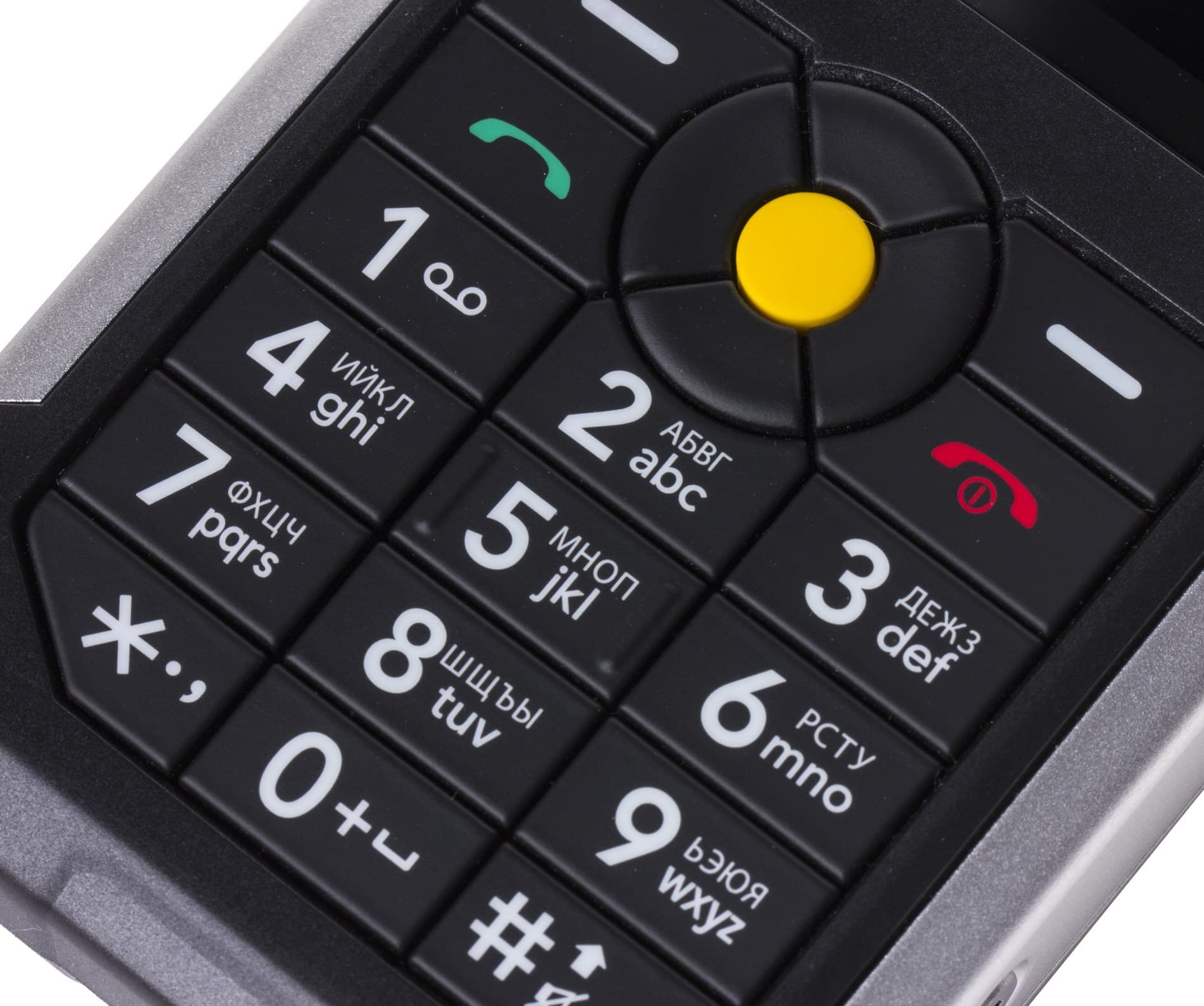 C противоположной стороны мы видим крупные желтые кнопки, удобные, с коротким и четким ходом. Крайние кнопки регулируют громкость, а центральная включает фонарик. Причем работает она даже когда клавиатура заблокирована. А вот для изменения громкости придется набирать стандартную комбинацию на основной клавиатуре — левая кнопка и звездочка.