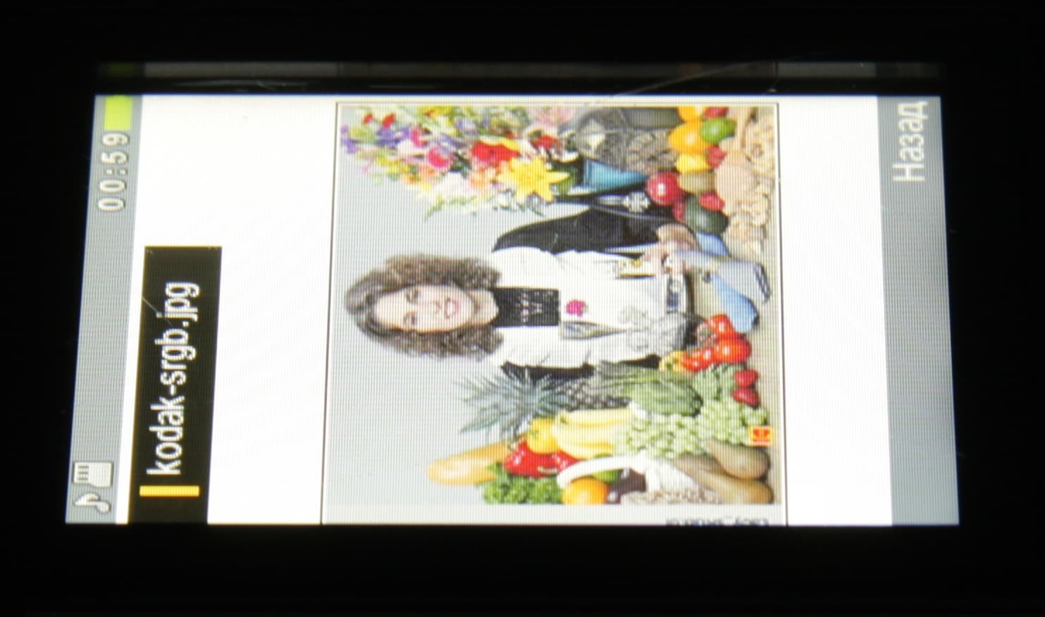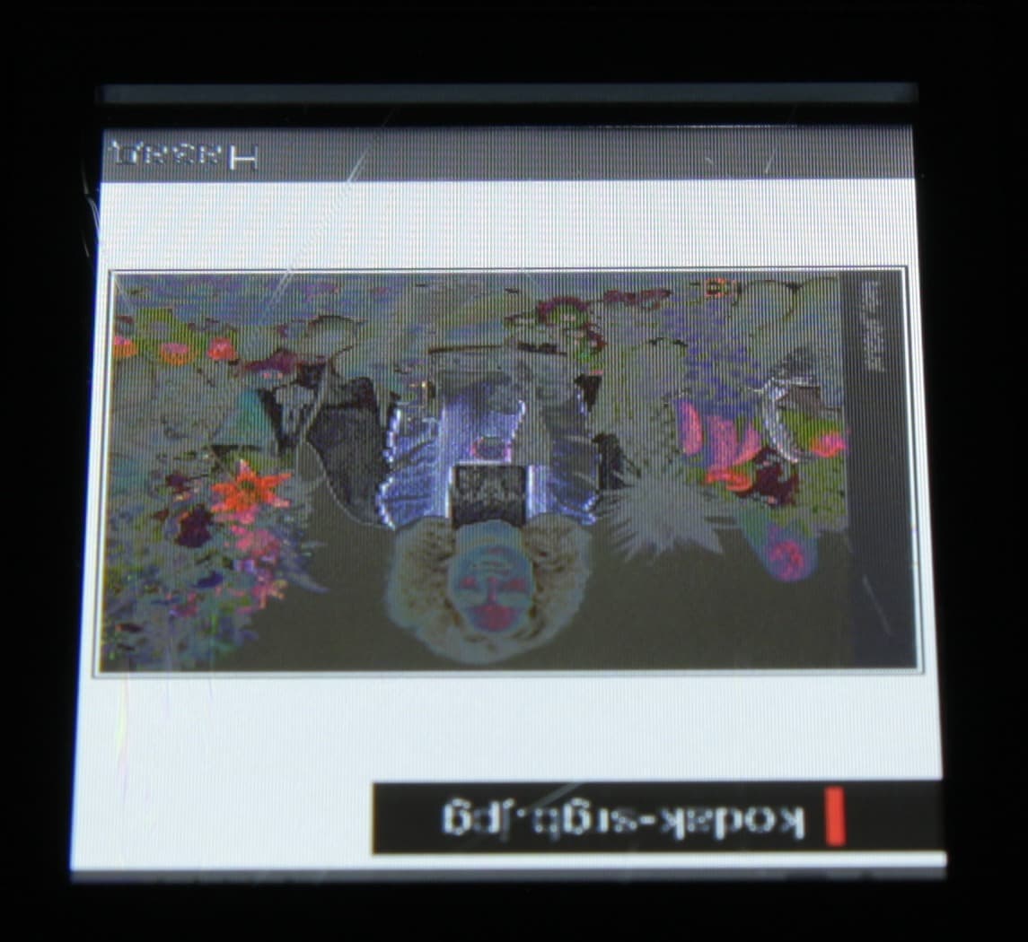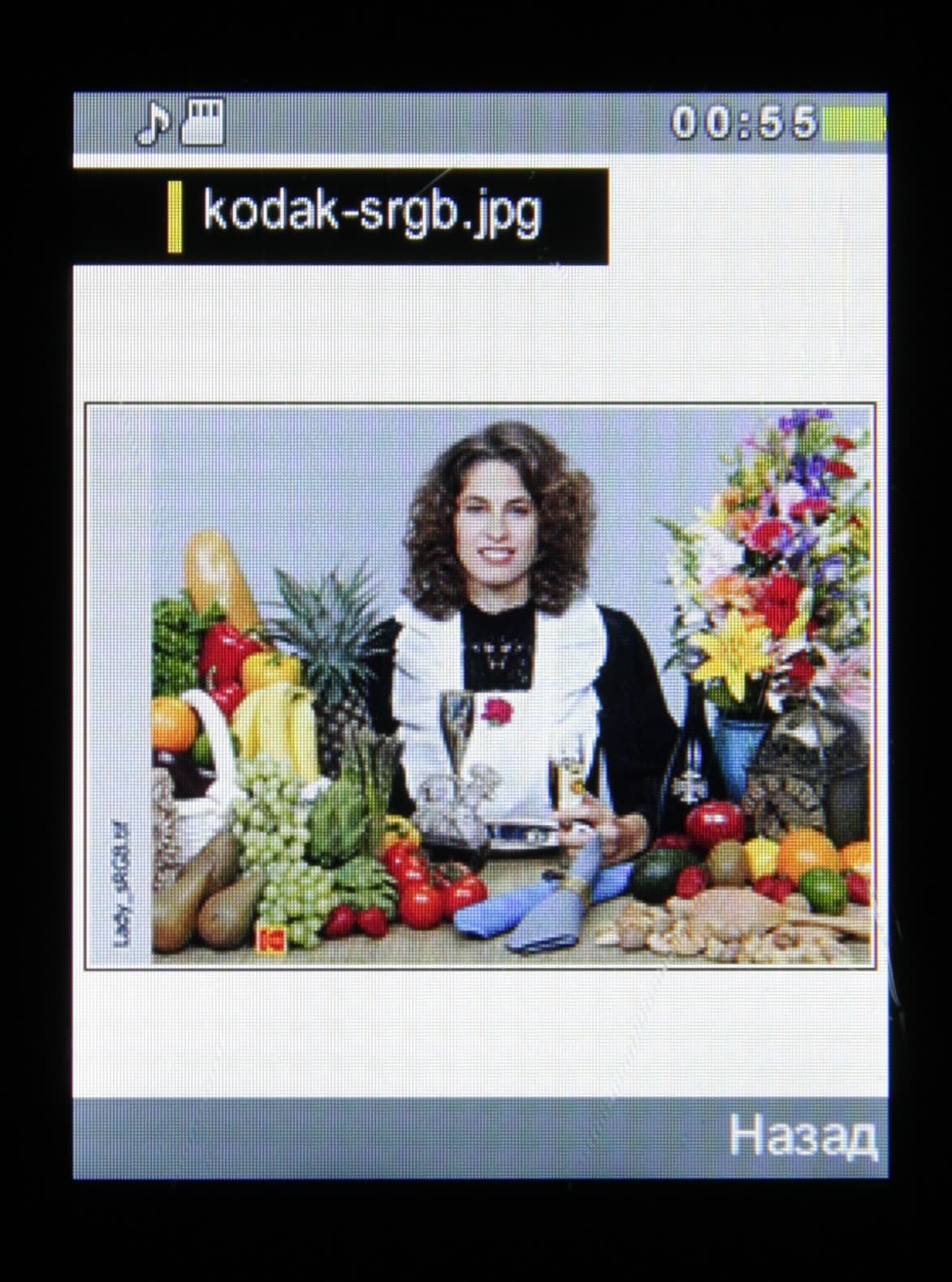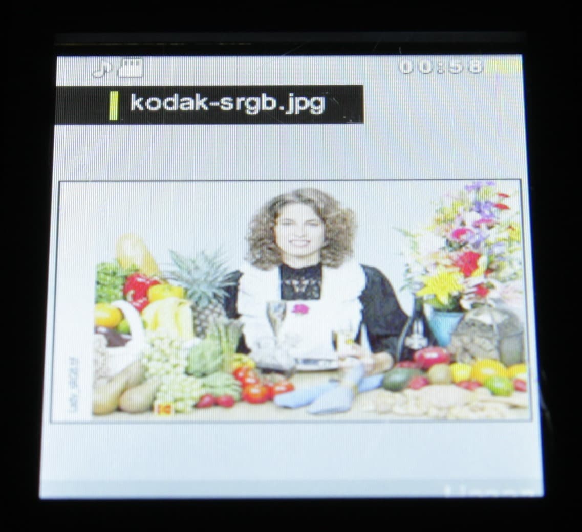 Из многочисленных дырочек на субпикселях только две можно приписать пылинкам на матрице фотоаппарата, все остальное присуще собственно экрану. Экран имеет не самые плохие углы обзора в горизонтальном направлении, но при малейшем отклонении вверх инвертируются темные оттенки, при отклонении вниз — светлые. Ниже — наглядная демонстрация того, что это значит. Перпендикулярно к экрану тестовая картинка: