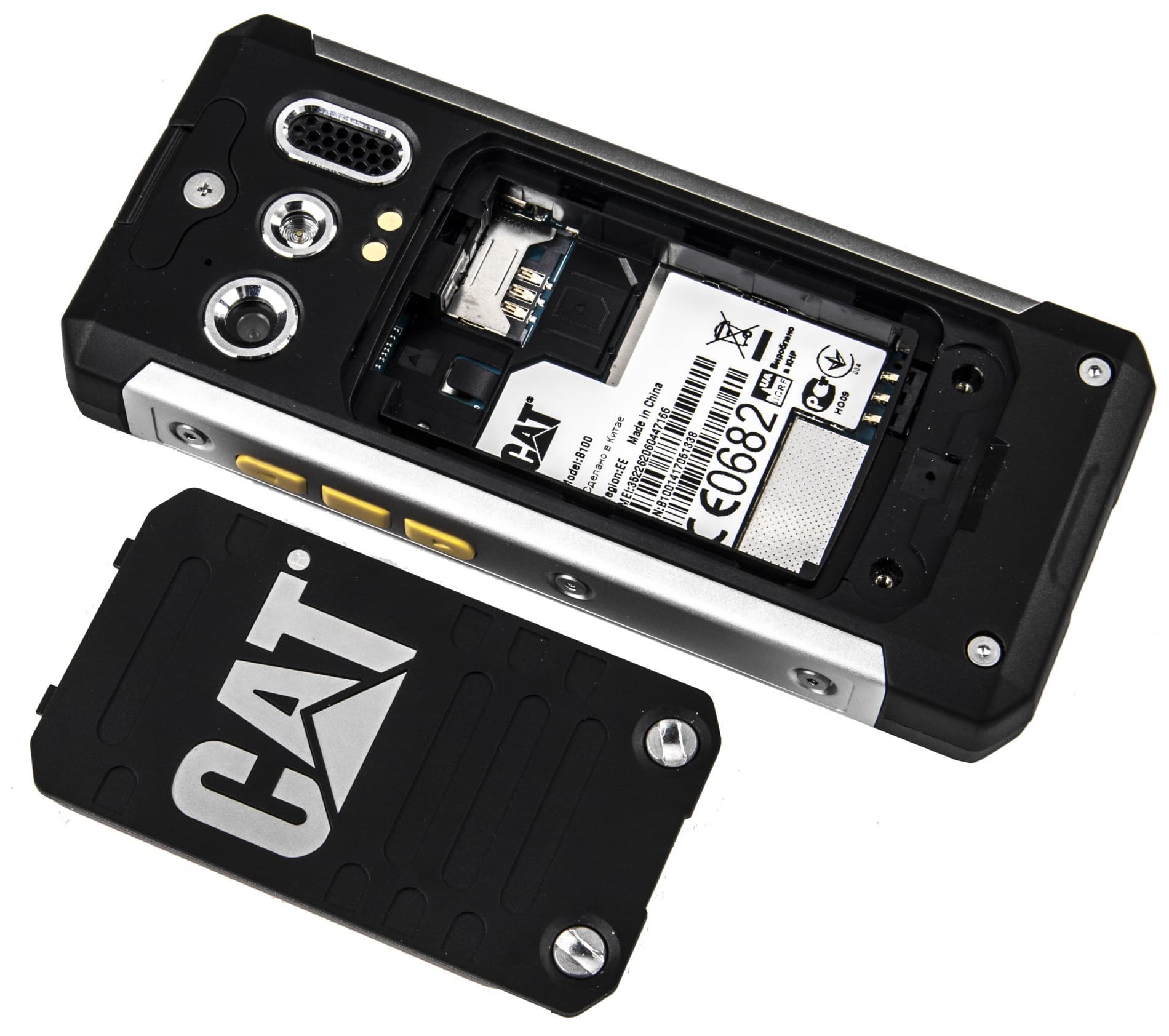 Вероятно, дизайн Cat B15 пришелся покупателям по душе, но сенсорный дисплей показался неудобным для экстремальных сценариев использования. Так и получился телефон Cat B100, очень похожий на своего более дорогого коллегу.