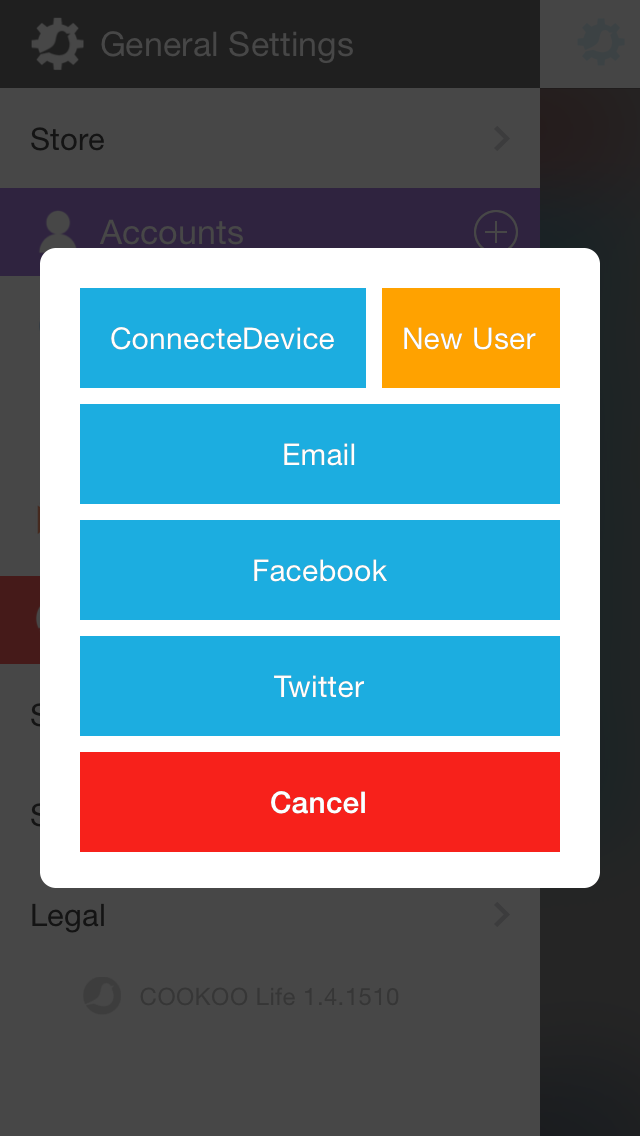 Часы Cookoo вполне можно использовать и просто как часы, безо всякого смартфона. Стрелки ходят и сами по себе :) Но если вы все-таки хотите получить «умную» функциональность, придется установить приложение Cookoo Life на смартфон. Приложение предлагает создать аккаунт в сервисе ConnecteDevice. Причем, это тоже обязательный шаг. После регистрации можно добавить другие сервисы — почту, Facebook и Twitter.