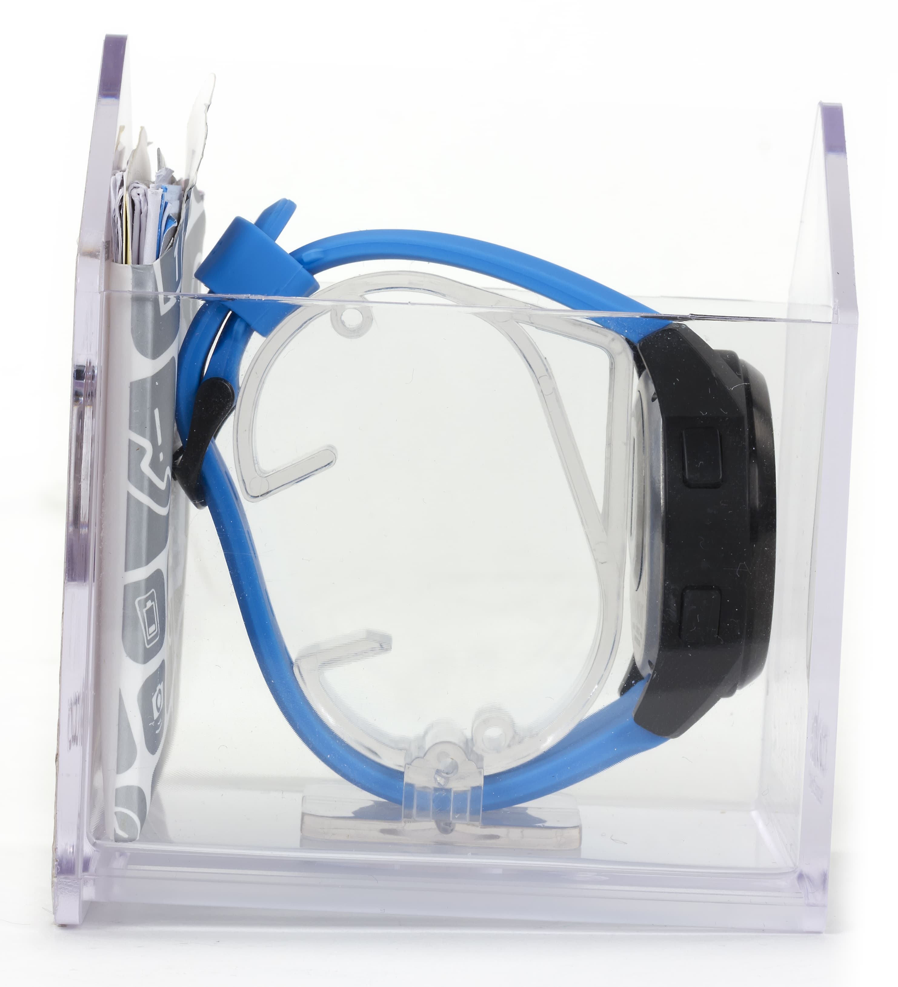 Внутри — сами часы, закрепленные на удерживающей их форме, а также набор листовок и руководств пользователя, размещенных в кармашке на внутренней стороне коробки.