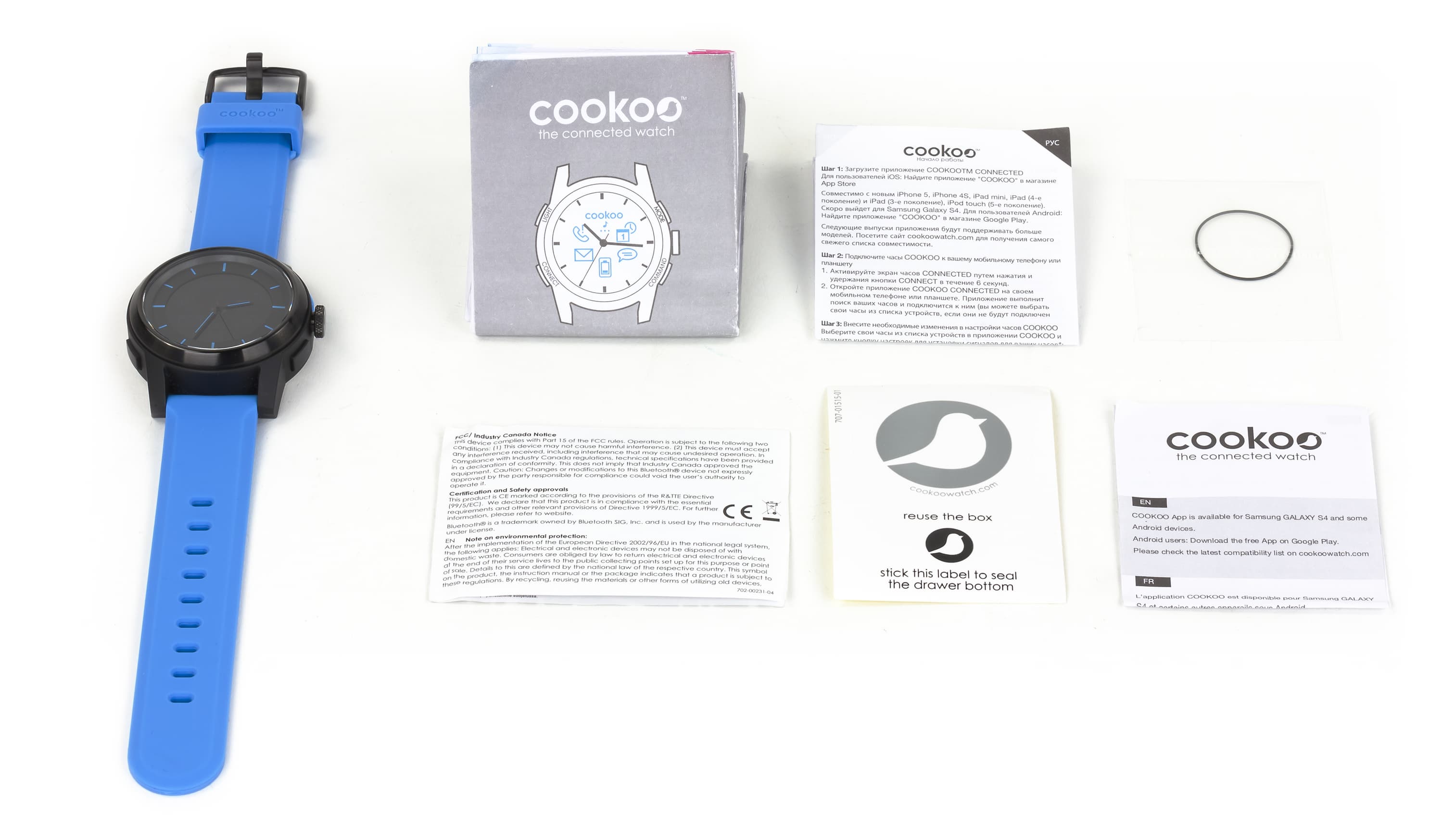 Cookoo — еще один (наряду с Pebble) проект, получивший жизнь благодаря Kickstarter. Правда, успех его был не столь громким, а дальнейшее развитие проекта изобиловало различными проблемами. Собственно говоря, проект Cookoo запустился еще в 2012 году, а широкое распространение выпущенный продукт получил в 2013 году, опередив, таким образом, моду на умные часы. Впрочем, весь 2013 год производители боролись с недостатками, которыми изобиловало ПО Cookoo, и, как мы увидим, до сих пор эти недостатки не полностью изжиты. Тем не менее, проект не умер: во-первых, вышло Android-приложение для работы с часами, во-вторых, расширилась география продаж. Сегодня Cookoo можно купить не только на Западе, но и в России (причем, в весьма крупных магазинах и торговых сетях).